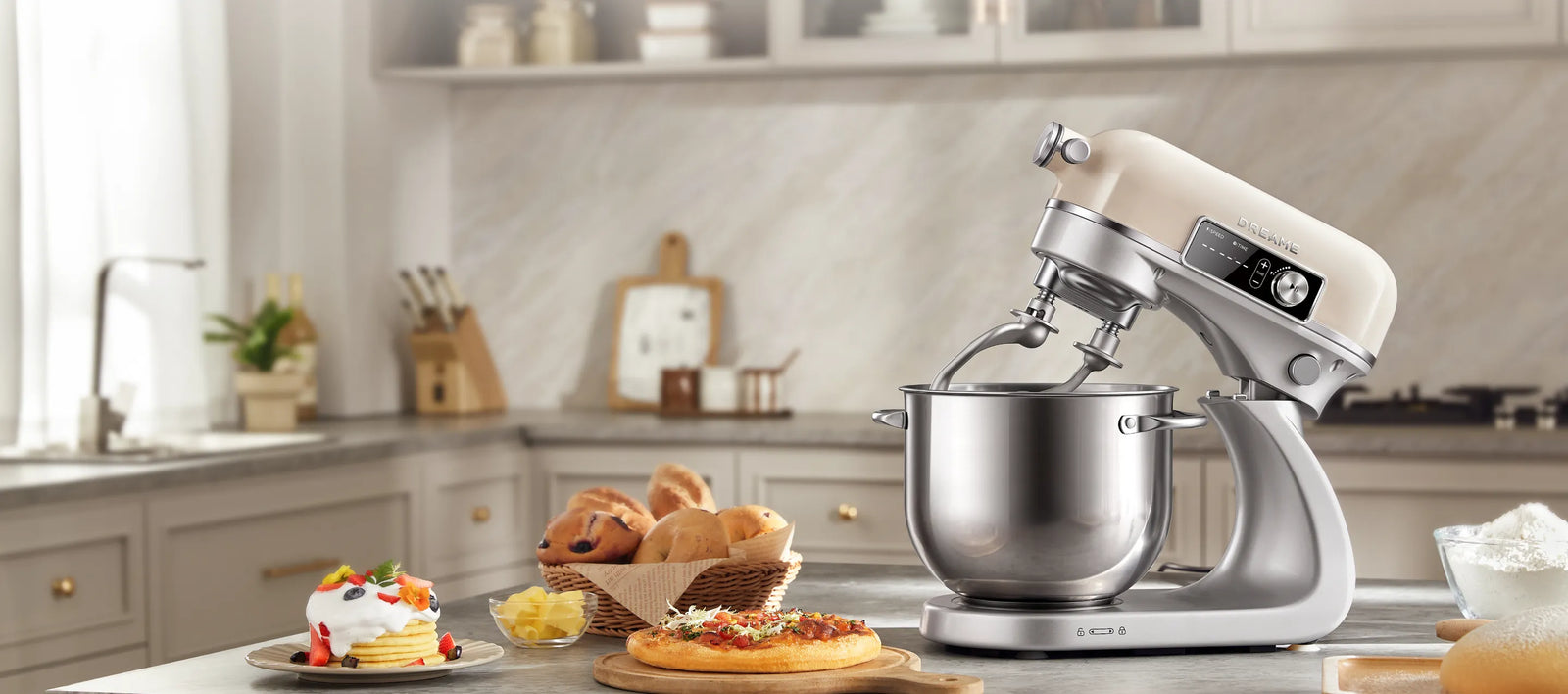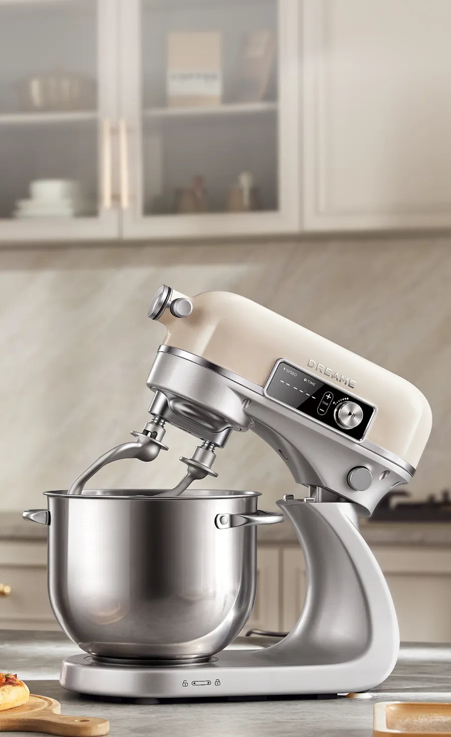 Patentierter bionischer Doppel-Knethaken*, entwickelt, um die professionelle Knettechnik von Meisterbäckern nachzuahmen
