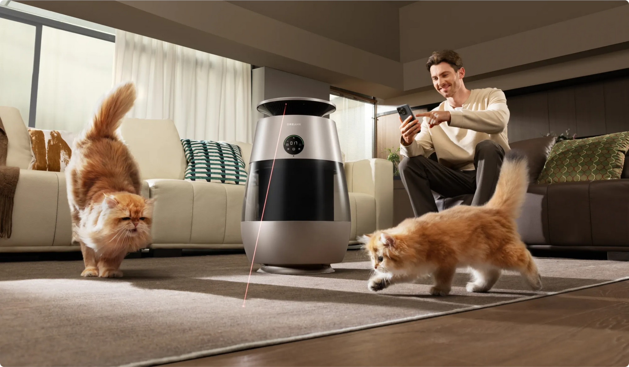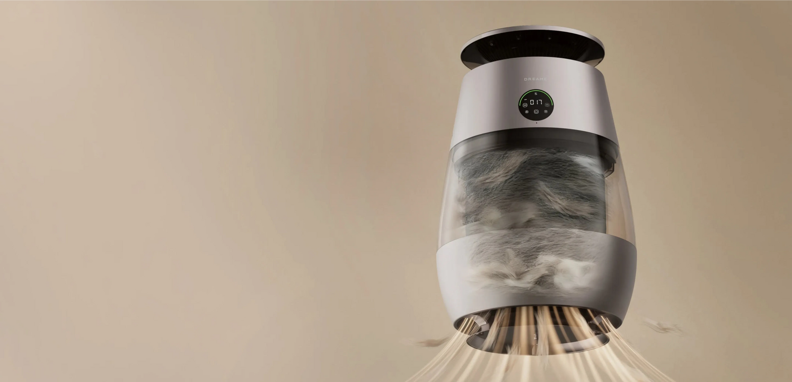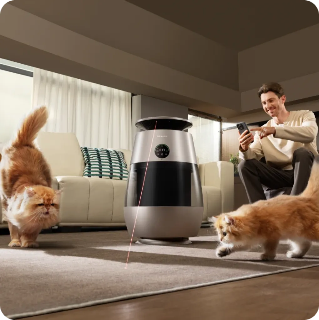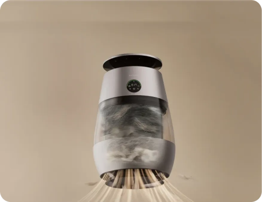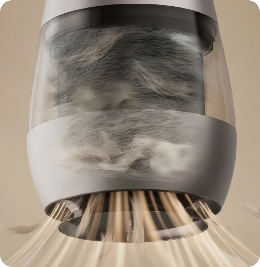 Mit weitreichender* Erfassung von Haaren, automatischer Sammlung, leistungsstarker Reinigung und hochfrequenter Luftzirkulation werden umherfliegende Haare nach dem ausgelassenen Spiel Ihrer Katze oder beim täglichen Haarverlust schnell erfasst – für eine 99,9%ige effiziente Entfernung von fliegenden Haaren sowie Haarbüscheln unter Möbeln und in Sofaritzen.
