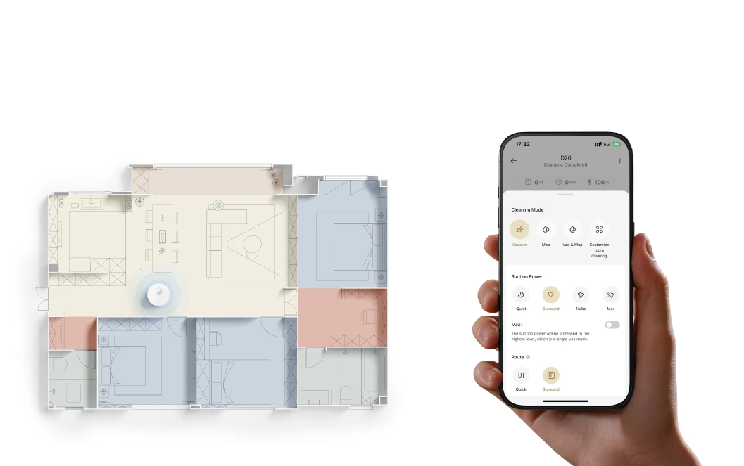 Optimieren Sie über die Dreamehome-App die Reinigung und lassen Sie jeden Raum individuell reinigen.
