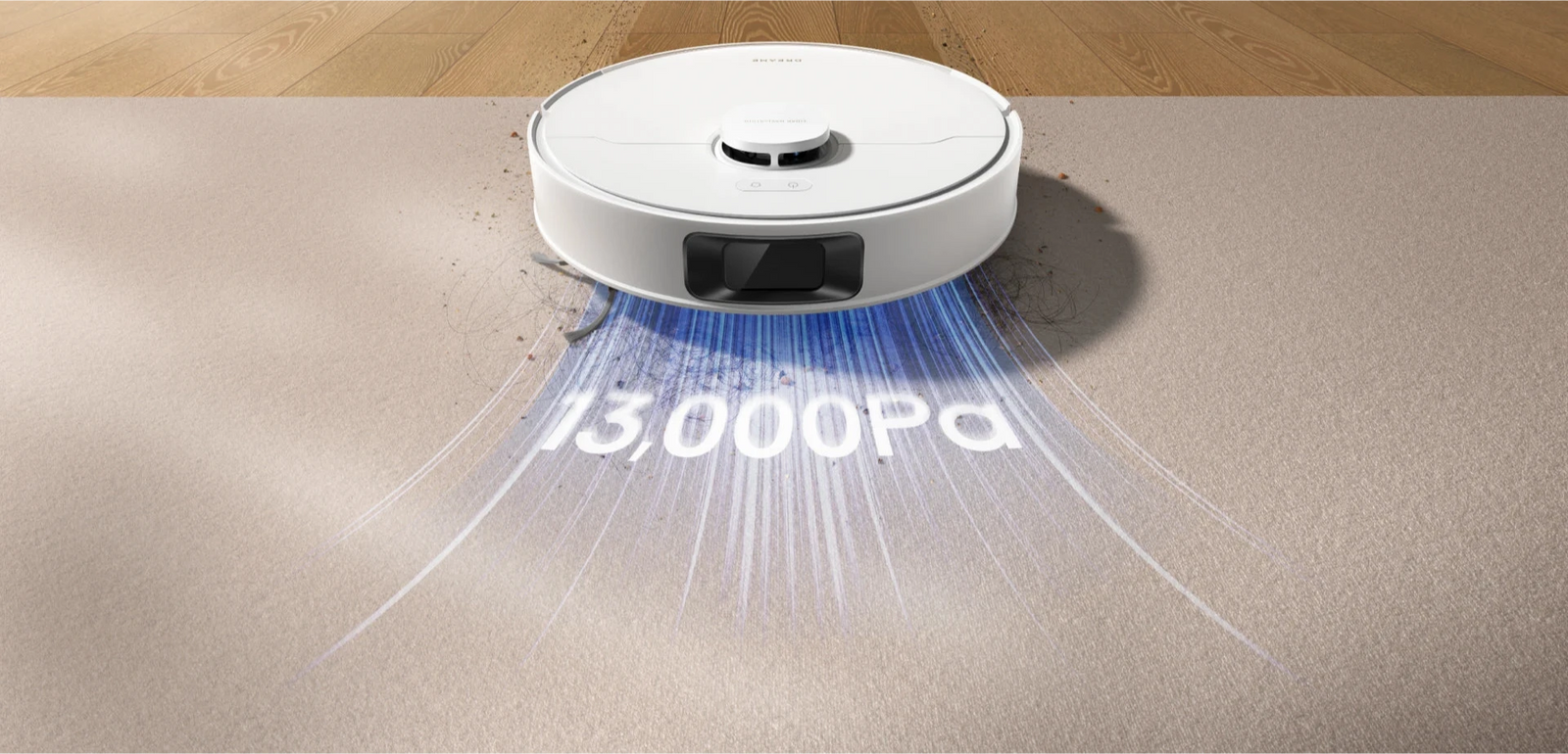 Mit 13.000 Pa* Vormax™-Saugkraft entfernt der Saugroboter Haare und Schmutz mühelos von verschiedensten Oberflächen. Erzielen Sie dank der fünf einstellbaren Saugstufen die optimale Leistung für Ihre Anforderungen.