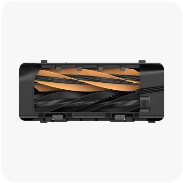 Die HyperStream™ Detangling DuoBrush besitzt zwei verschiedene luftdurchströmte Bürsten mit einer innovativen Struktur, die mühelos Schmutz von Teppichen und aus Hartbodenfugen entfernen und dabei jedes einzelne Haar einfach in den Staubbeutel befördert, um ein Verheddern zu verhindern.