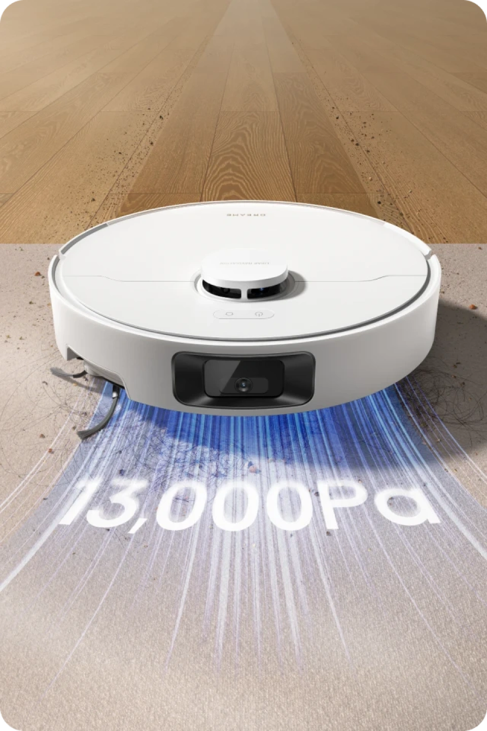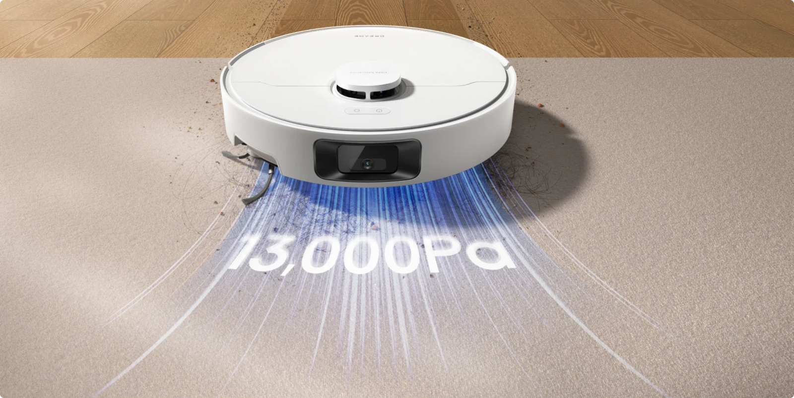 *13.000 Pa, saugt 100 % der großen Partikel auf: basierend auf Daten aus unserem internen Labor. Die tatsächliche Leistung kann abweichen.