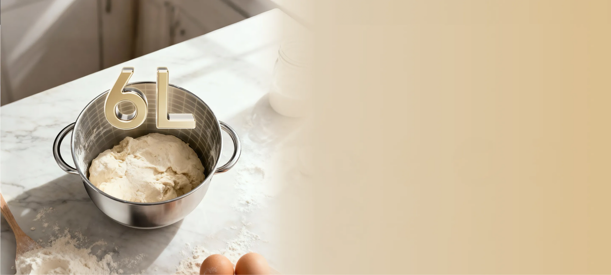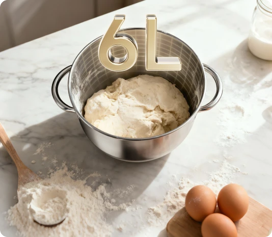 Mischt bis zu 1,5 kg* Mehl in einer einzigen Charge, ideal für Familienmahlzeiten und geselliges Beisammensein. Sparen Sie Zeit und Mühe, damit Sie sich auf die Freude am Backen konzentrieren können.