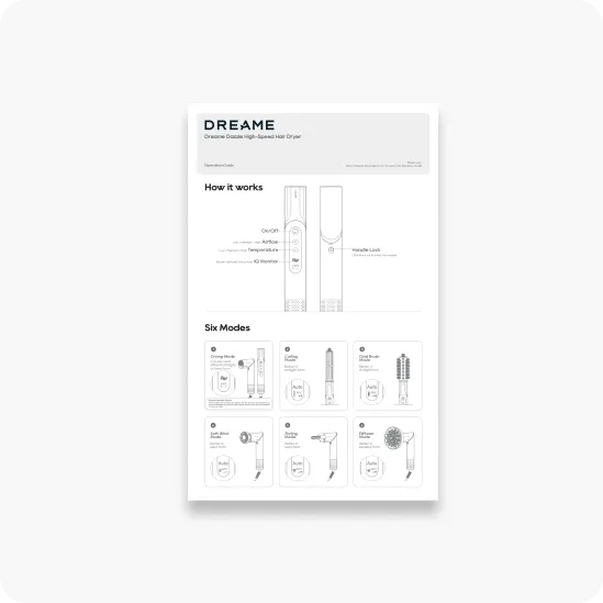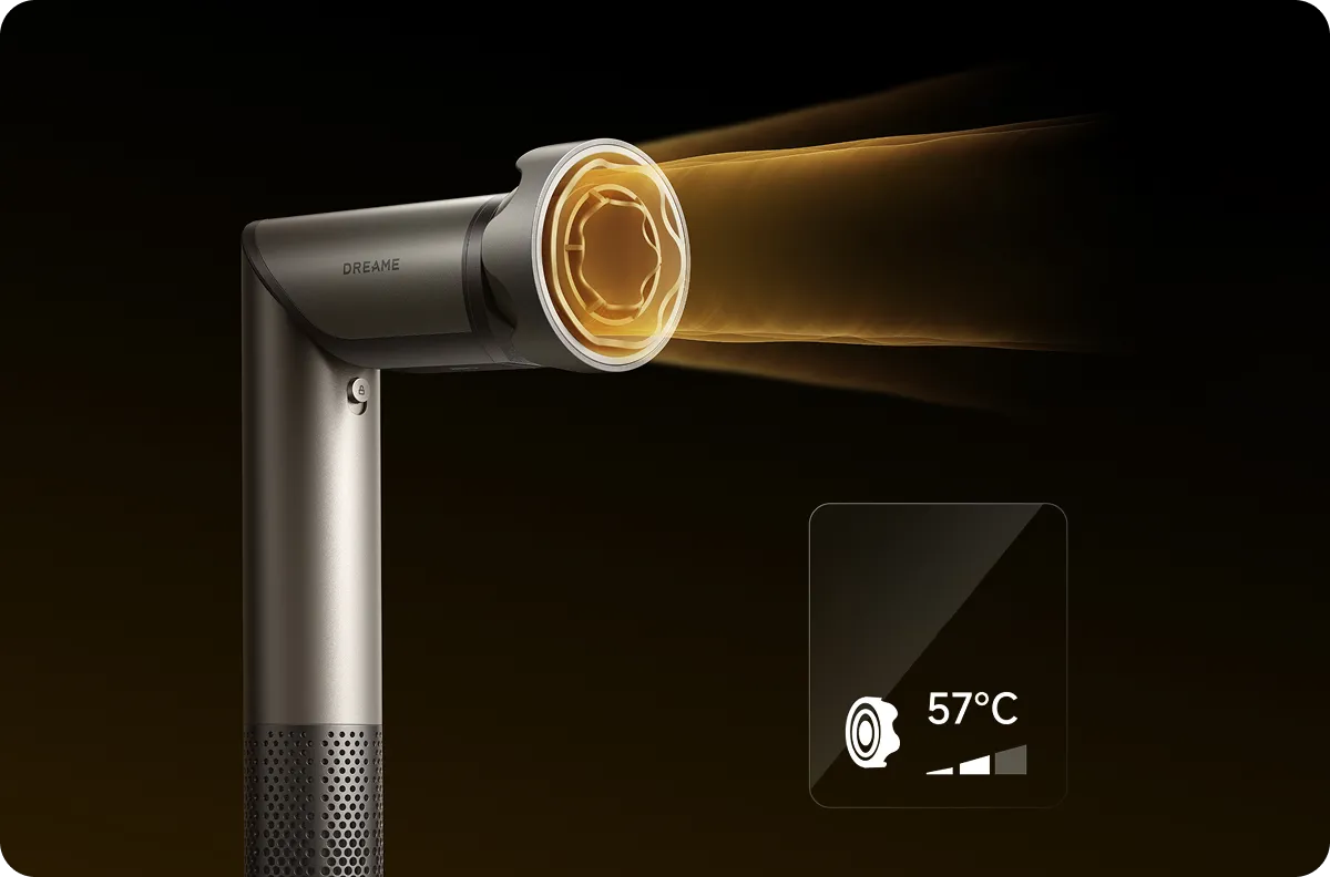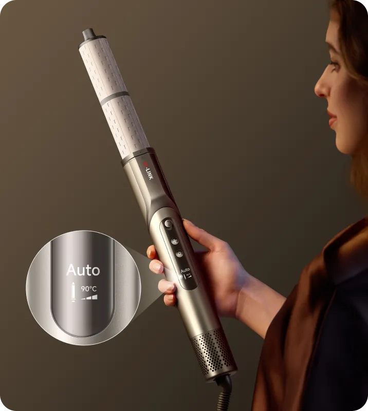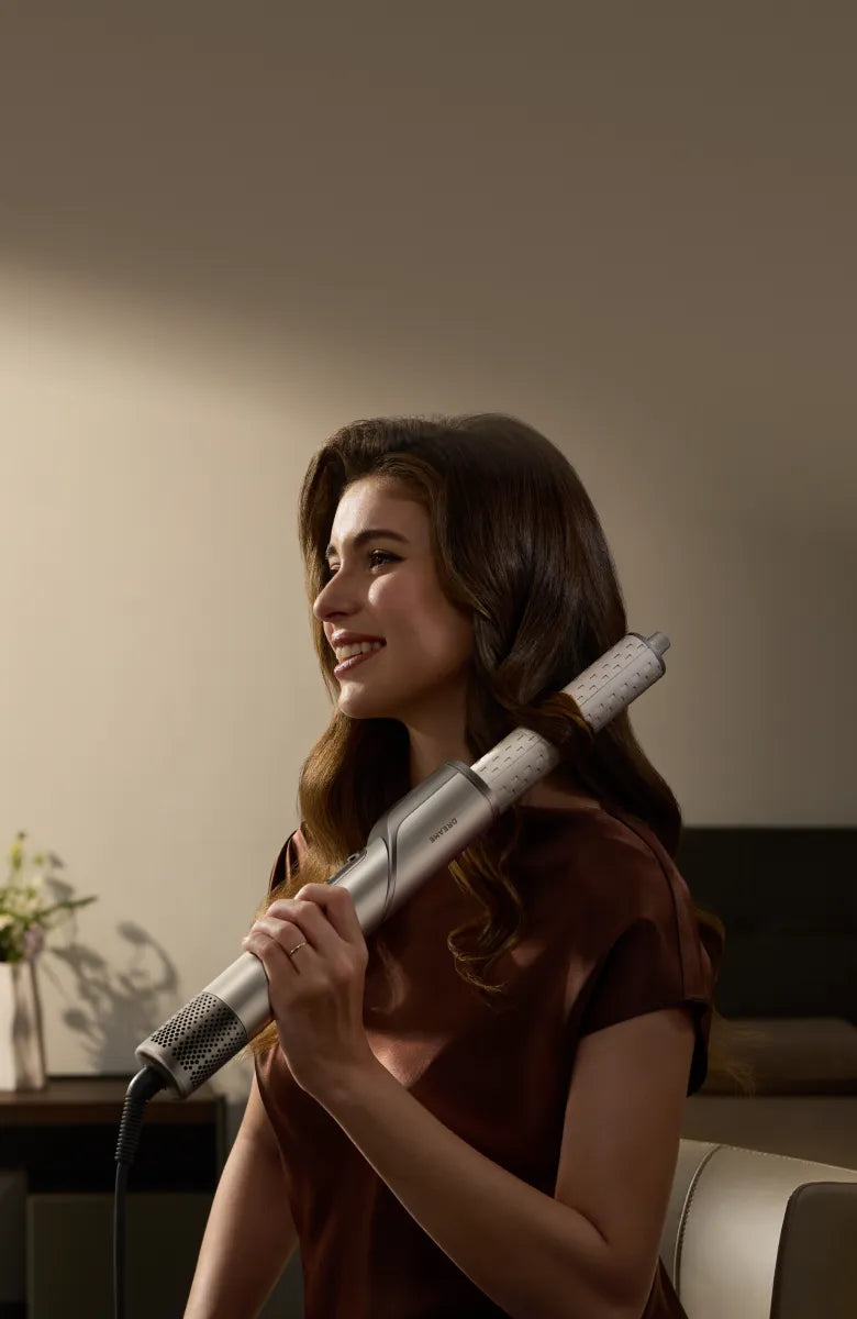 Sobald Dazzle die Lockendüse erkennt, aktiviert er automatisch den Lockenmodus – hierbei werden 10 Sekunden lang warme Luft zum Formen und 5 Sekunden lang kühle Luft zum Fixieren abgegeben, mit einer 7-sekündigen Pause für einfaches Styling. Intelligente Steuerung für geschmeidige, natürliche Locken.
