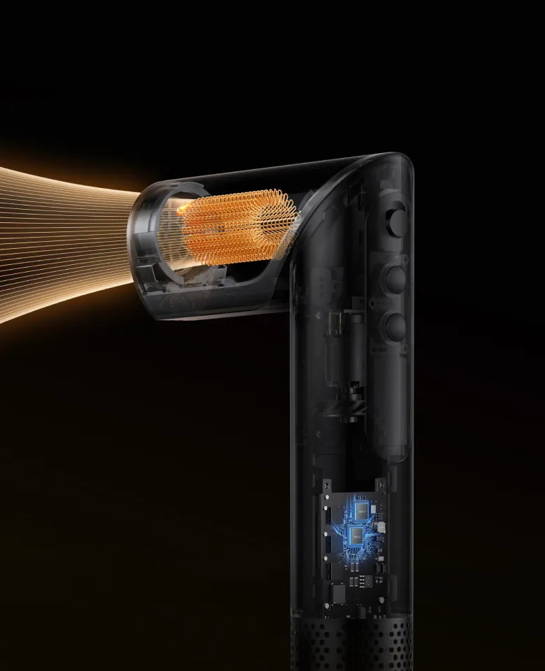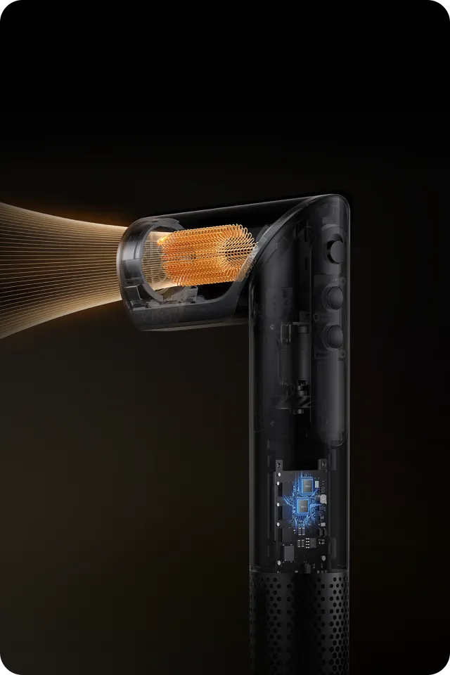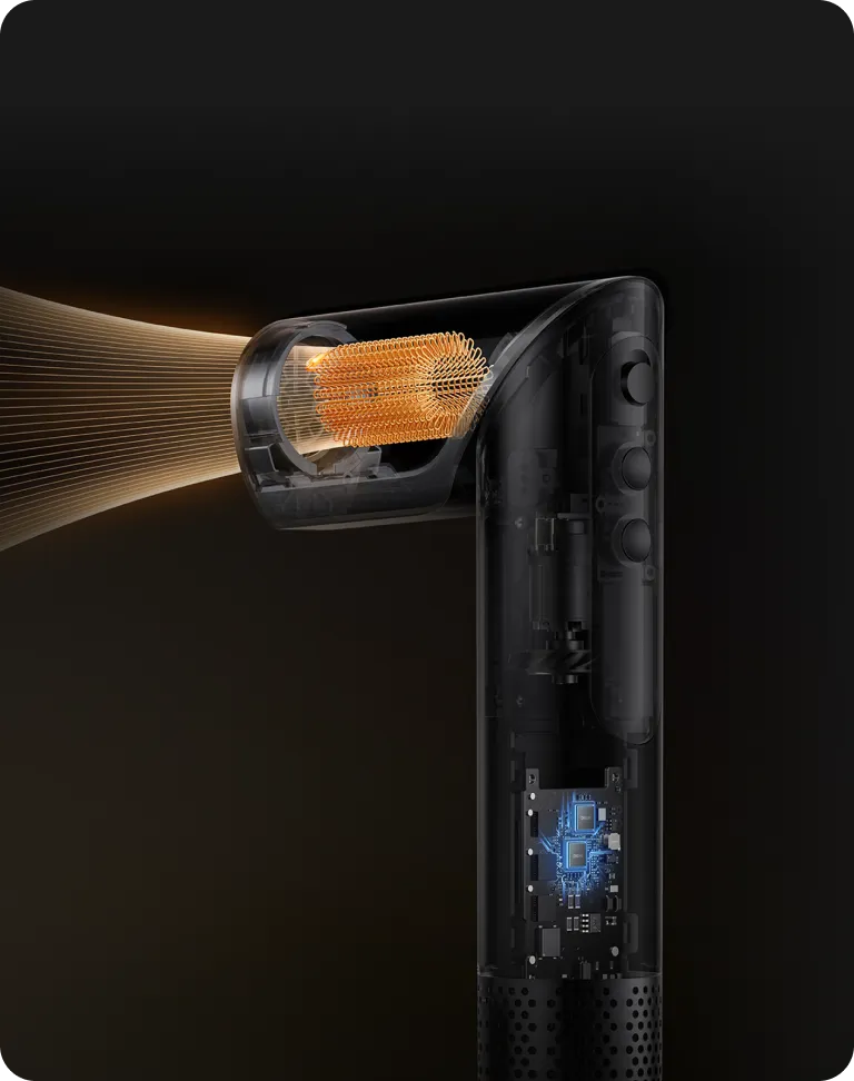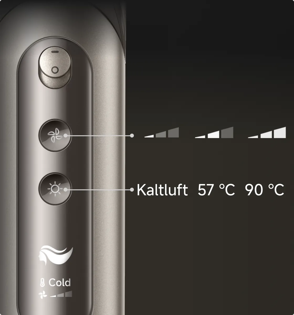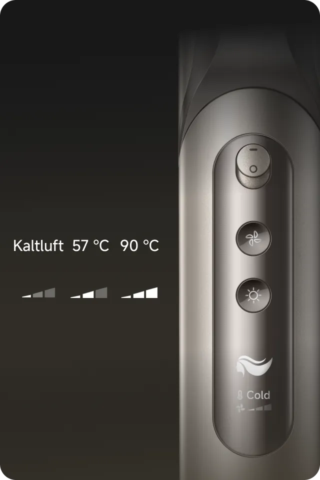 Der Hochgeschwindigkeitsmotor erzeugt einen starken Luftstrom und sorgt so für schnelles und effizientes Trocknen der Haare.