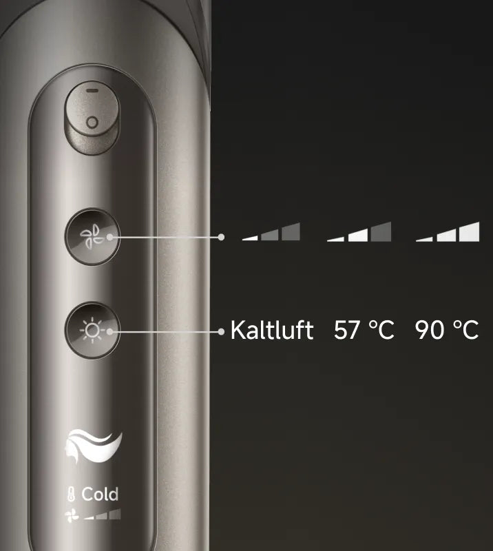 Dazzle überzeugt mit 3 Styling-Modi und 3 Luftstromgeschwindigkeiten, die sich manuell an den jeweiligen Haartyp und die gewünschten Styling-Vorlieben anpassen lassen – von sanftem Luftstrom für feines Haar bis hin zu kraftvollem Trocknen für mehr Volumen.