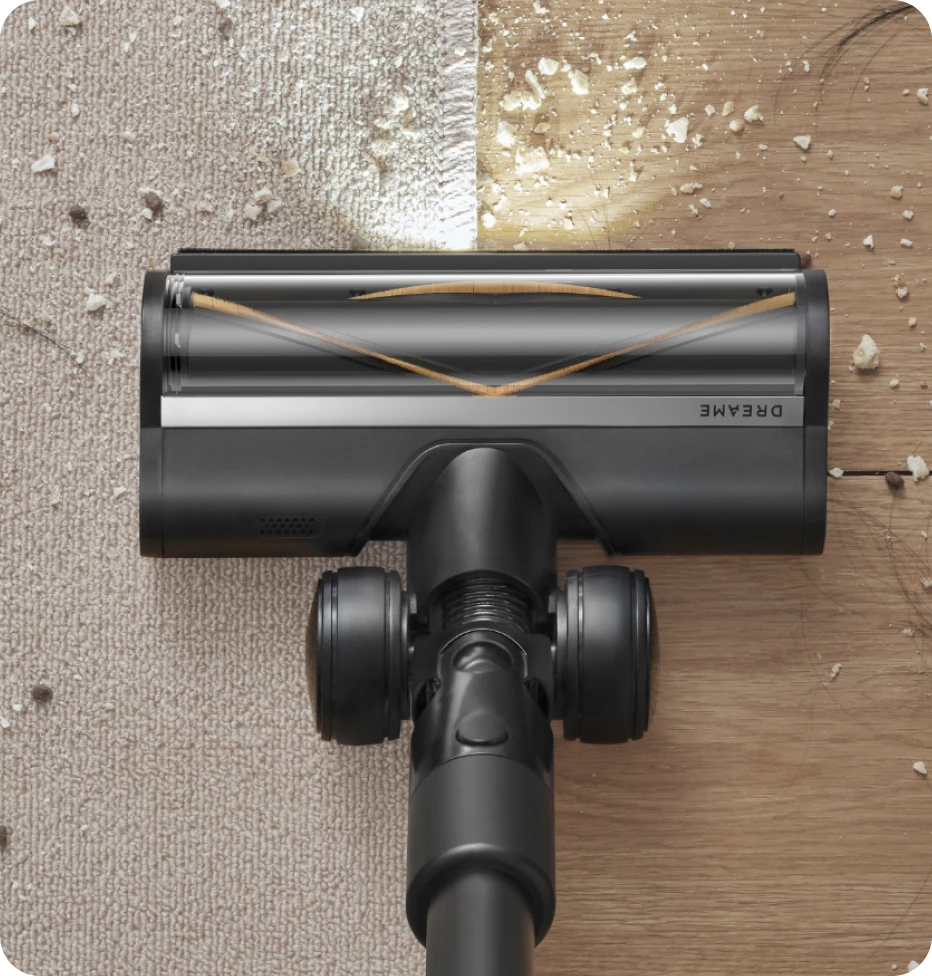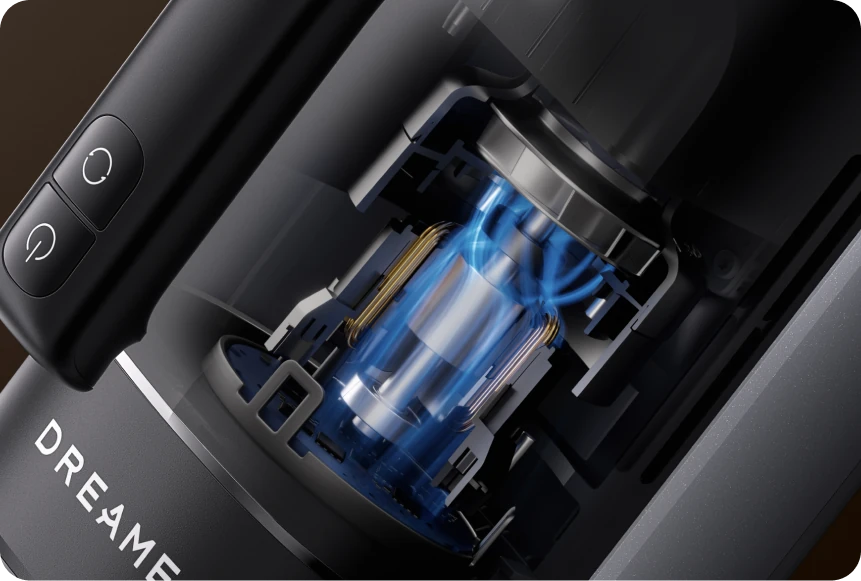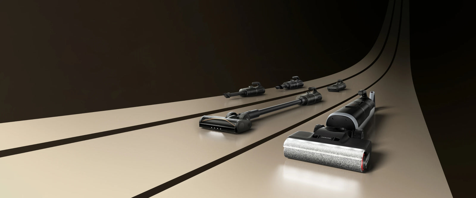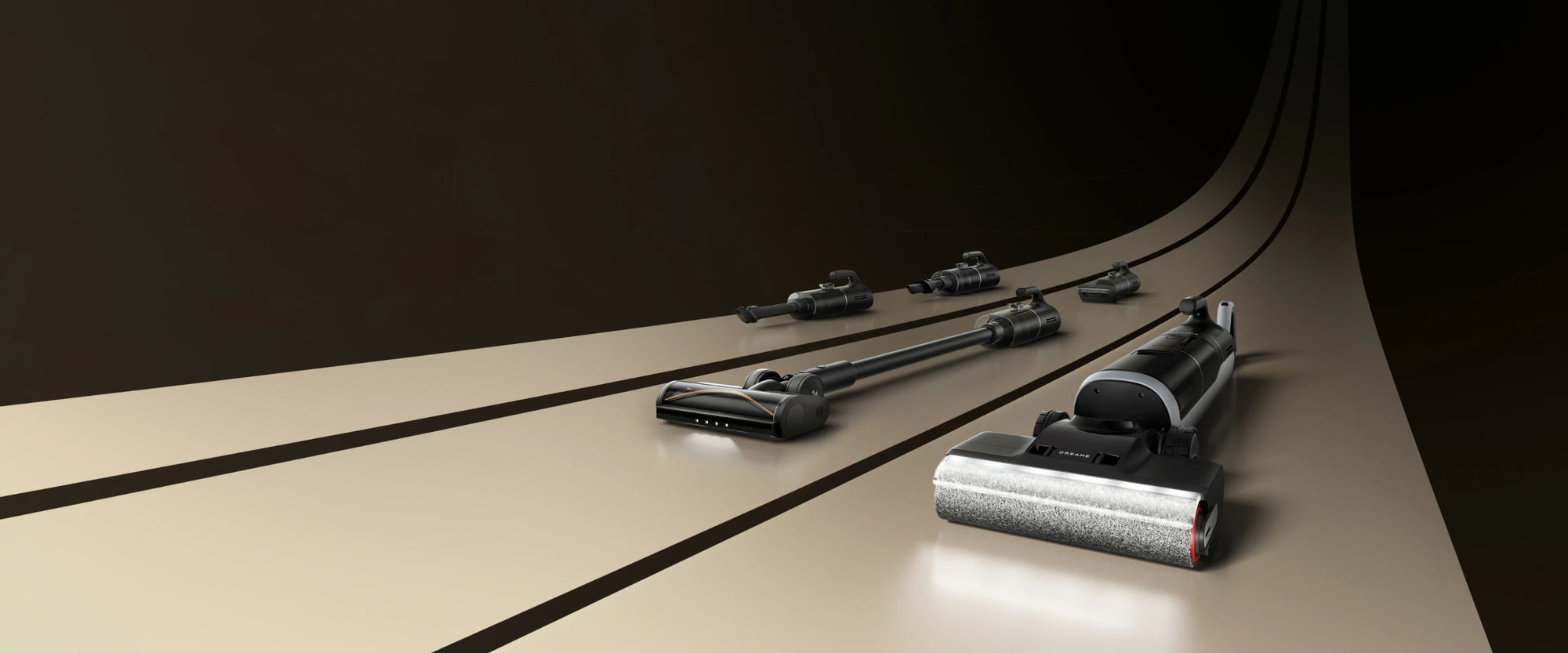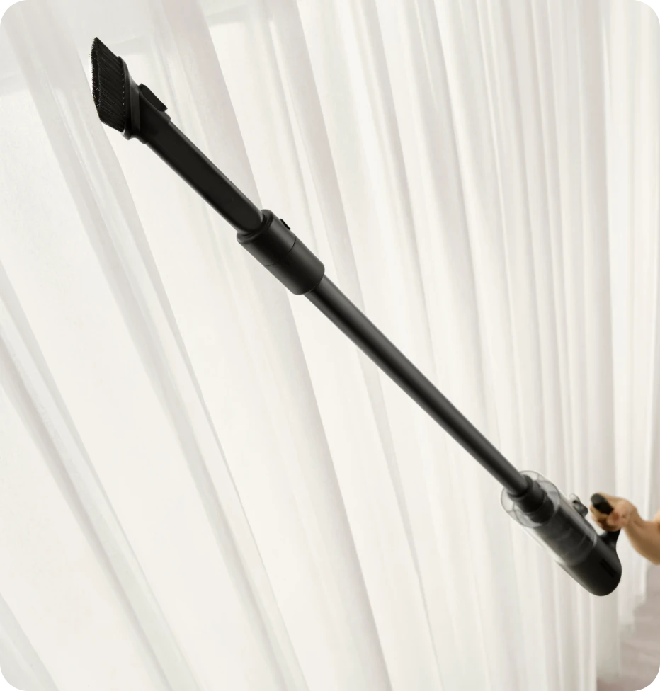 180 °-Reichweite mit flachem Design. Tiefenreinigung unter Möbeln und an schwer erreichbaren Stellen mit uneingeschränkter Saugkraft von 18.000 Pa.