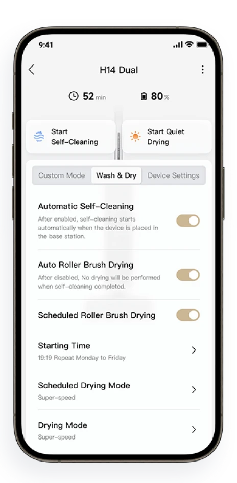 Der H14 Dual verfügt über eine beeindruckende Saugleistung von 18.000 Pa und bekämpft mühelos diverse Arten von flüssigen und trockenen Verschmutzungen gleichzeitig.*