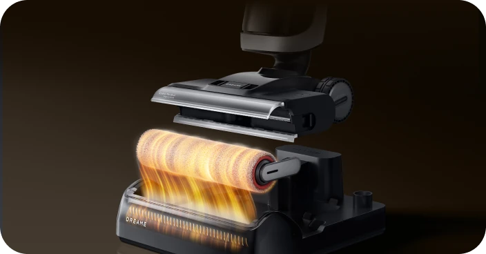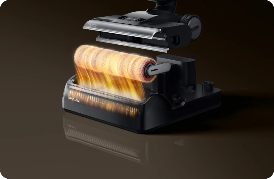 *Bürstenpflege in der Basis: Die Basis ist dicht verschlossen, während die Rollenbürste mit Heißluft getrocknet wird.