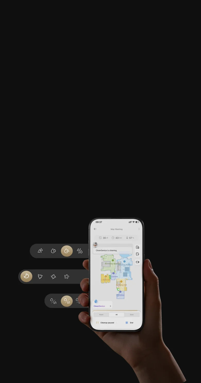 Die Reinigung lässt sich mit einem einfachen Sprachbefehl starten, anhalten oder planen, ohne dass Sie Ihr Smartphone in die Hand nehmen müssen.*
