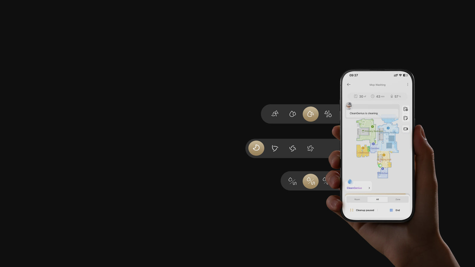 *Doppelte Moppreinigung und doppelte Bodenreinigung sind verfügbar, sobald diese Funktionen im CleanGenius™-Modus in der Dreamehome App eingestellt wurden.