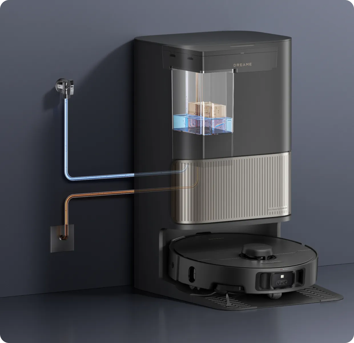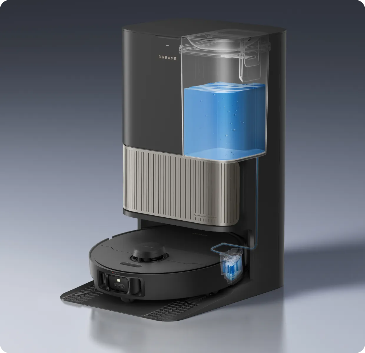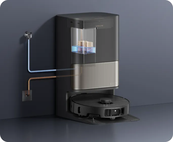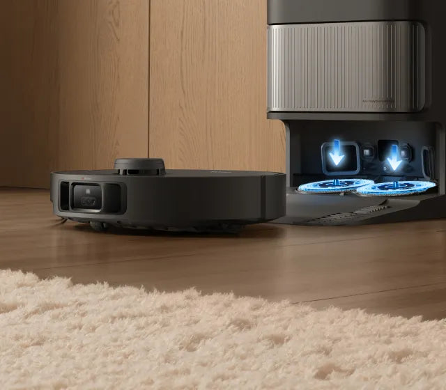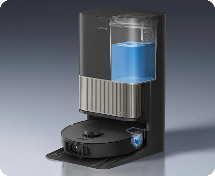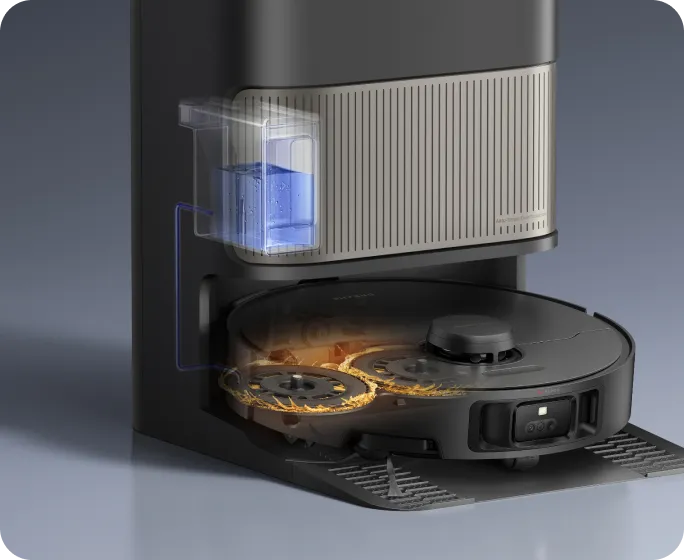 Nach dem Wischen ermittelt die Dockingstation per Farbsensor, wie schmutzig das Schmutzwasser ist. Wenn es zu trüb ist, werden die Wischer-Pads vor der zweiten Reinigungsrunde erneut gewaschen, sodass Ihre Böden immer mit sauberen Wischmopps gereinigt werden.