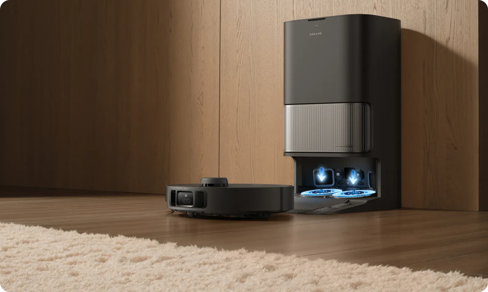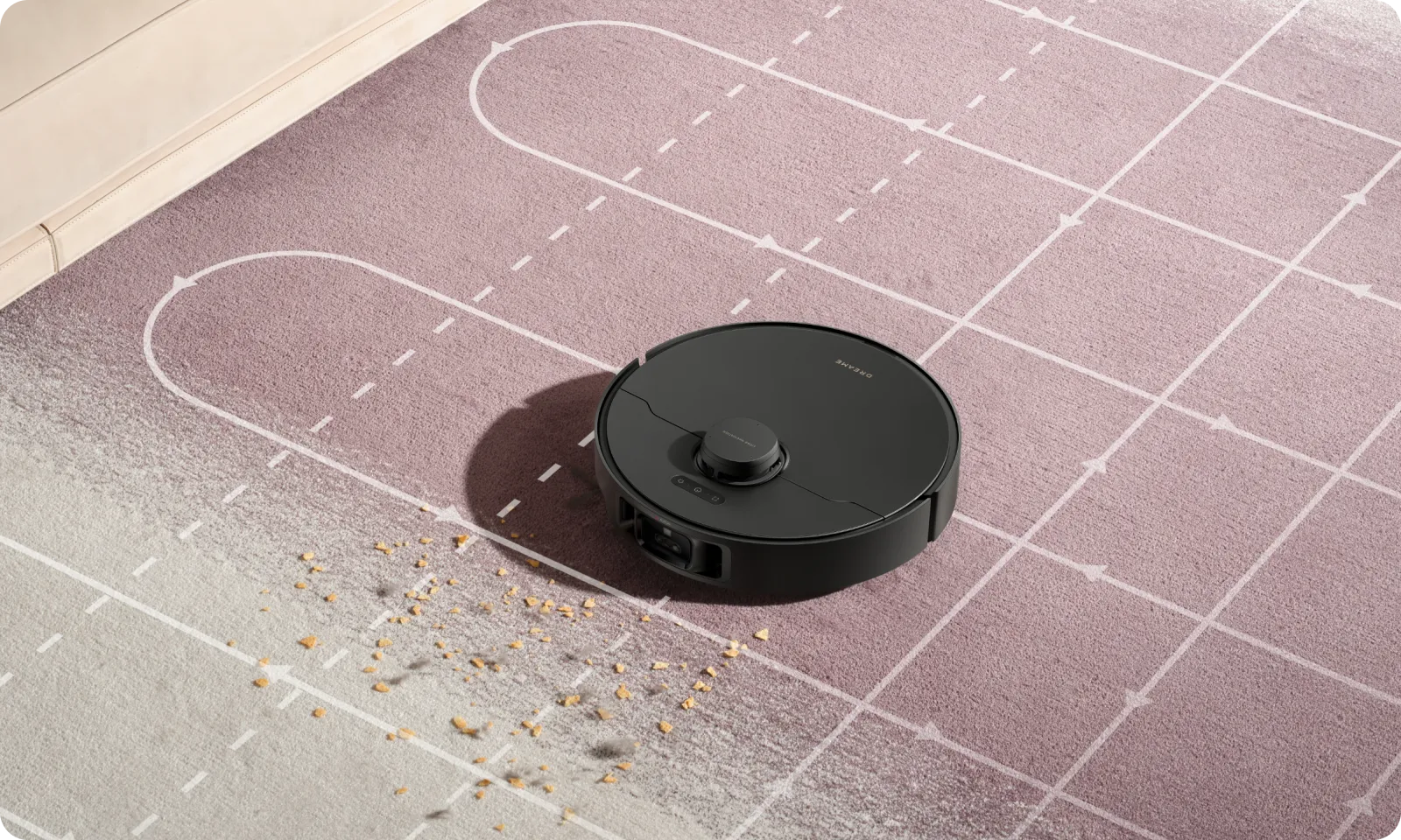 *Modus zur intensiven Reinigung von Teppichen: Nach der Aktivierung verlangsamt sich der Saugroboter und reinigt den Teppich zweimal; Saugverstärkungsmodus: Sobald Teppiche erkannt werden, reinigt der Saugroboter mit maximaler Saugkraft. Nicht verfügbar im Saugmodus mit leiser Saugstufe. Beide Modi können über die Dreamehome App eingestellt werden.