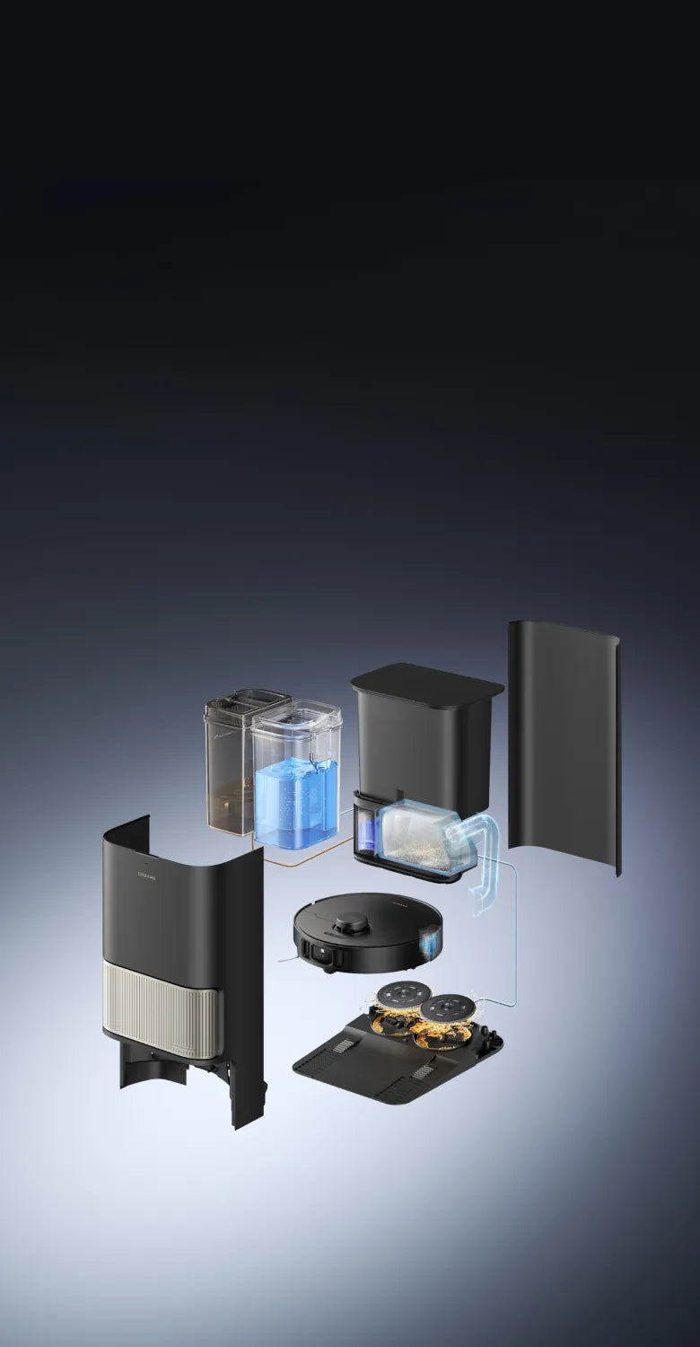 Mit seiner Saugkraft von bis zu 19.000 Pa beseitigt der L40s Pro Ultra selbst die hartnäckigsten Verschmutzungen – ob nass oder trocken, ob in Hartbodenfugen oder Teppichen. Mit der von Dreame entwickelten HyperStream™ Detangling DuoBrush werden aufgewickelte Haare zu 100 % entwirrt. Genießen Sie mehr Flexibilität dank intelligenter Funktionen, die über die Dreamehome App oder über den Sprachbefehl „OK, Dreame“ abgerufen werden können.