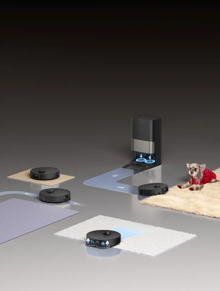 Mit TripleUp Tech kann der L40s Pro Ultra seine Seitenbürste, Hauptbürste und Wischer-Pads separat anheben und absenken, um verschiedene Verschmutzungsarten zu beseitigen.