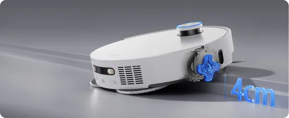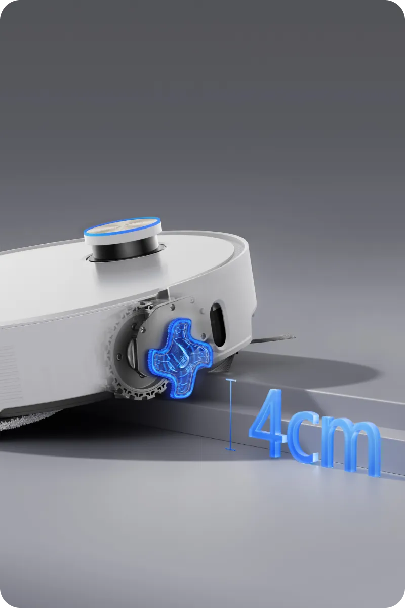 Mit dem dynamischen EasyLeap™-System kann der L50 Pro Ultra kinderleicht bis zu 4 cm* hohe Stufen und Schienen von Schiebetüren überwinden. Durch die kletterfähigen Haupt- und Nebenräder sind Erhöhungen und niedrige Hindernisse kein Problem für den Saugroboter.