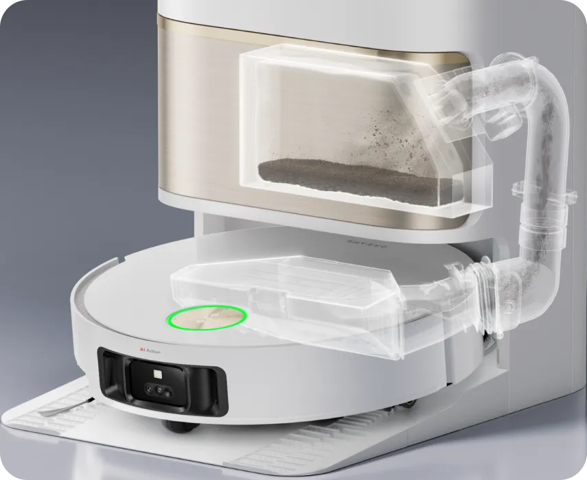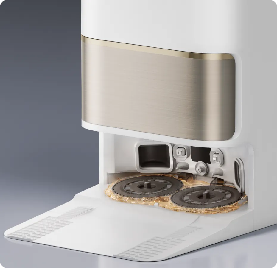 Mit TripleUp Tech hebt der L50 Pro Ultra die Seiten- und Hauptbürsten, während die Wischer-Pads abgesenkt werden, um den Boden gründlich zu reinigen. Dadurch werden Flecken wie Milch oder Kaffee effektiv entfernt, die Bürsten bleiben trocken und es werden keine Gerüche aus dem Staubbehälter nach außen getragen.
