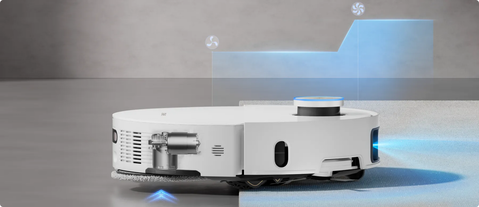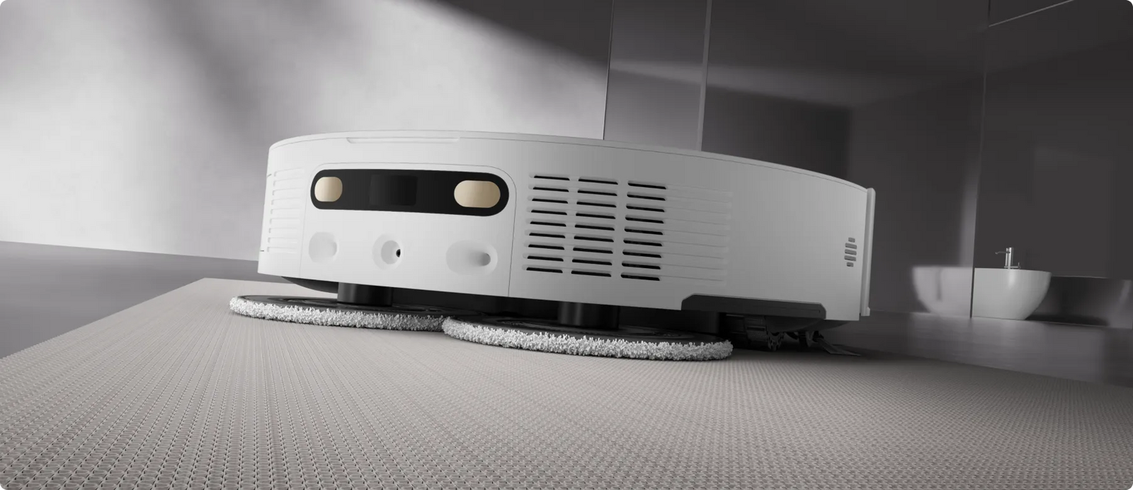 * 10,5 mm: basierend auf internen Labortests. Beim Anheben des Wischmopps verändert sich die Höhe des Saugroboters um 10,5 mm.