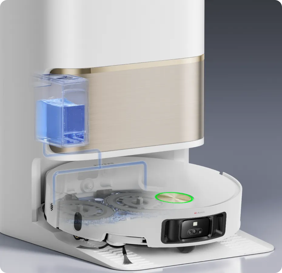 Mit einem Farbsensor analysiert der L50 Pro Ultra das schmutzige Wasser nach dem Wischen. Wenn das Wasser zu trüb ist, passt der Saugroboter das Wasservolumen in 32 Stufen an, um seine Wischer-Pads gründlich zu reinigen. Danach ist der L50 Pro Ultra bereit, Ihre Böden für ein makelloses Finish ein zweites Mal zu wischen.