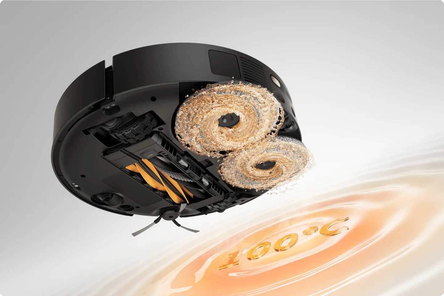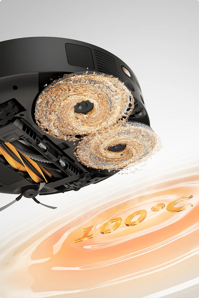 100 °C heißes Wasser reinigt die Wischer-Pads gründlich, um Fett aufzulösen, Gerüche zu reduzieren und hygienische Frische zu erhalten – und kühlt dann automatisch aus Sicherheitsgründen ab.