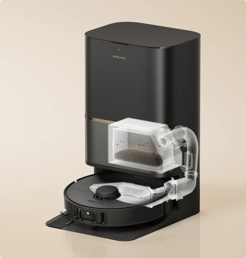 Die berührungslose Staubentsorgung sorgt für sauberere Böden und reduziert die tägliche Wartung.
