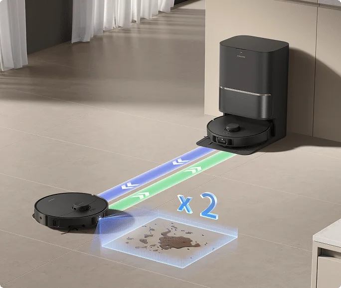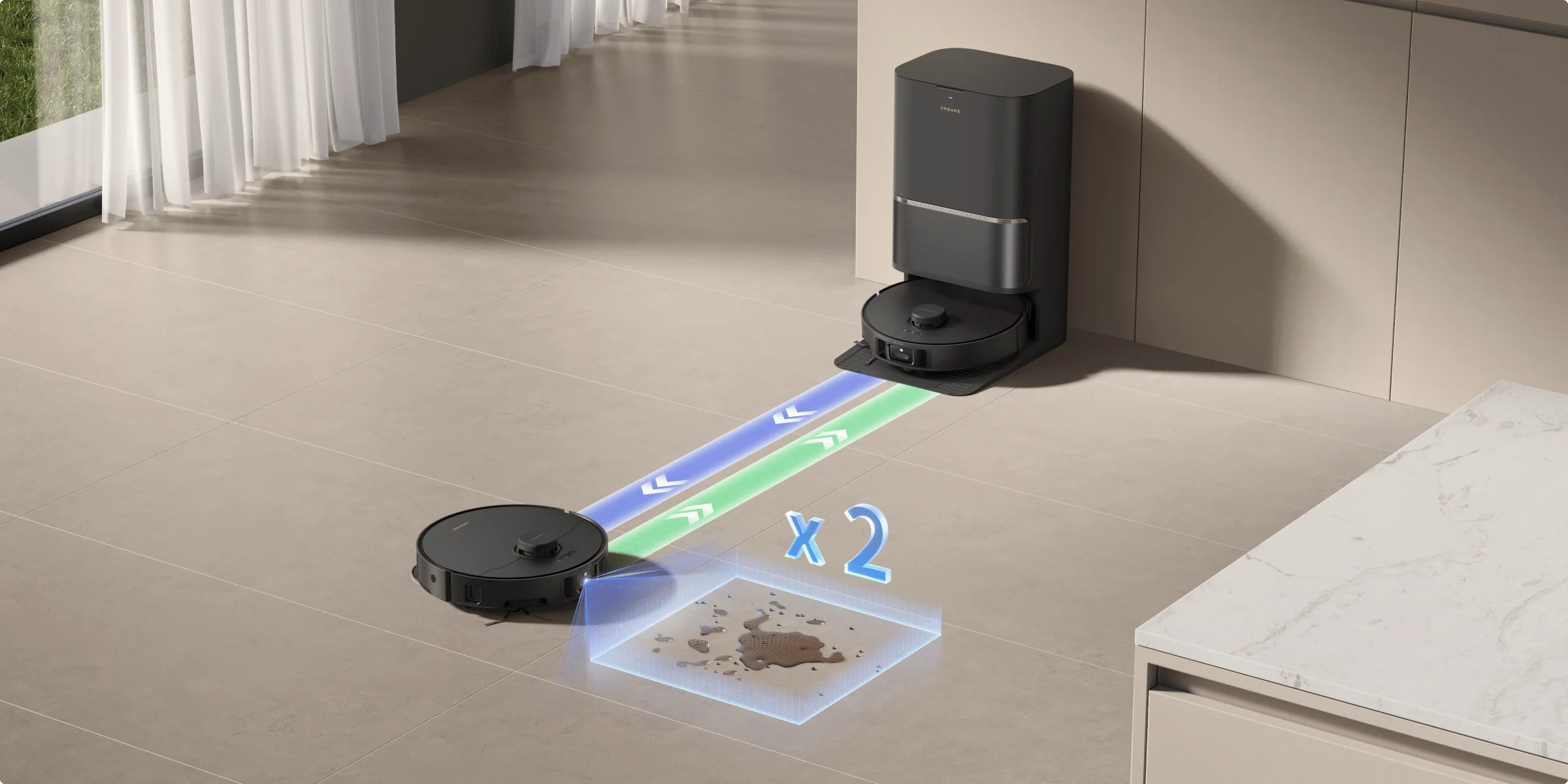 Der L50s Pro Ultra bietet eine starke Saugkraft für eine gründliche Reinigung, zwei Rollen zum Entwirren von Haaren für eine mühelose Haaraufnahme und Wischmopp-Selbstreinigung mit 100 °C heißem Wasser für optimale Hygiene. Die wartungsfreie Ladestation übernimmt Waschen, Trocknen, Nachfüllen und Staubbehälterentleerung – so bleiben Ihre Böden mit minimalem Aufwand makellos sauber.