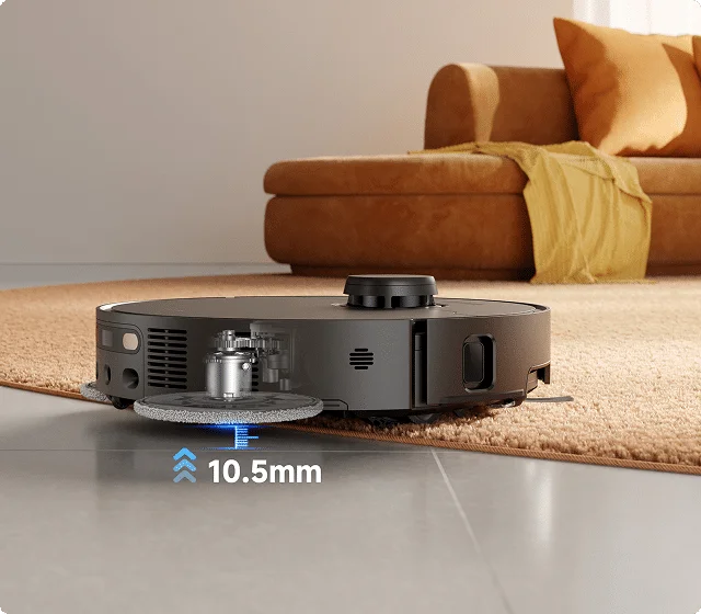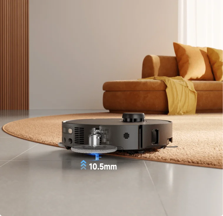 * 10,5 mm: Der Höhenunterschied des Saugroboters vor und nach dem Anheben des Mopps beträgt 10,5 mm.