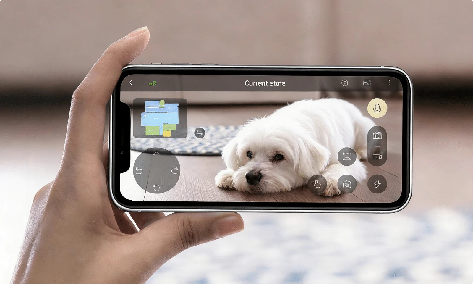 Finden Sie Ihr Haustier mit einem Fingertipp, machen Sie ein Foto und interagieren Sie aus der Ferne per Video und Zwei-Wege-Sprachfunktion.