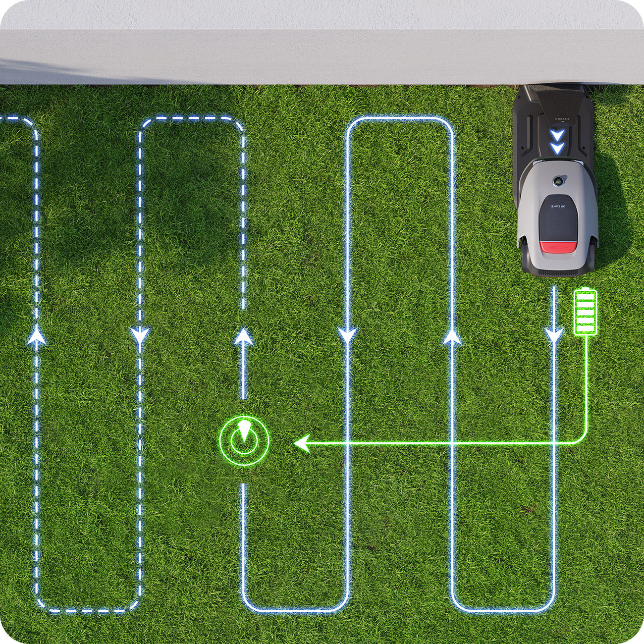 Der A1 Pro wendet beim Mähen eine innovative U-förmige Wegeplanung an, dank der alle Bereiche Ihres Rasens gemäht werden und Sie eine beeindruckende Gleichmäßigkeit und Schnittqualität erhalten. Große Gärten von bis 1000 m² können in nur 24 Stunden vollständig gemäht werden.5