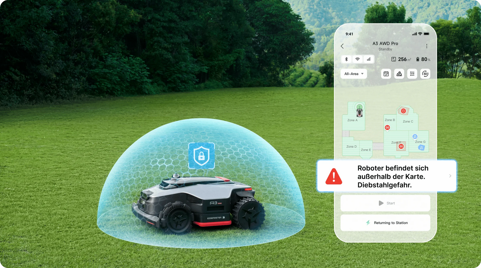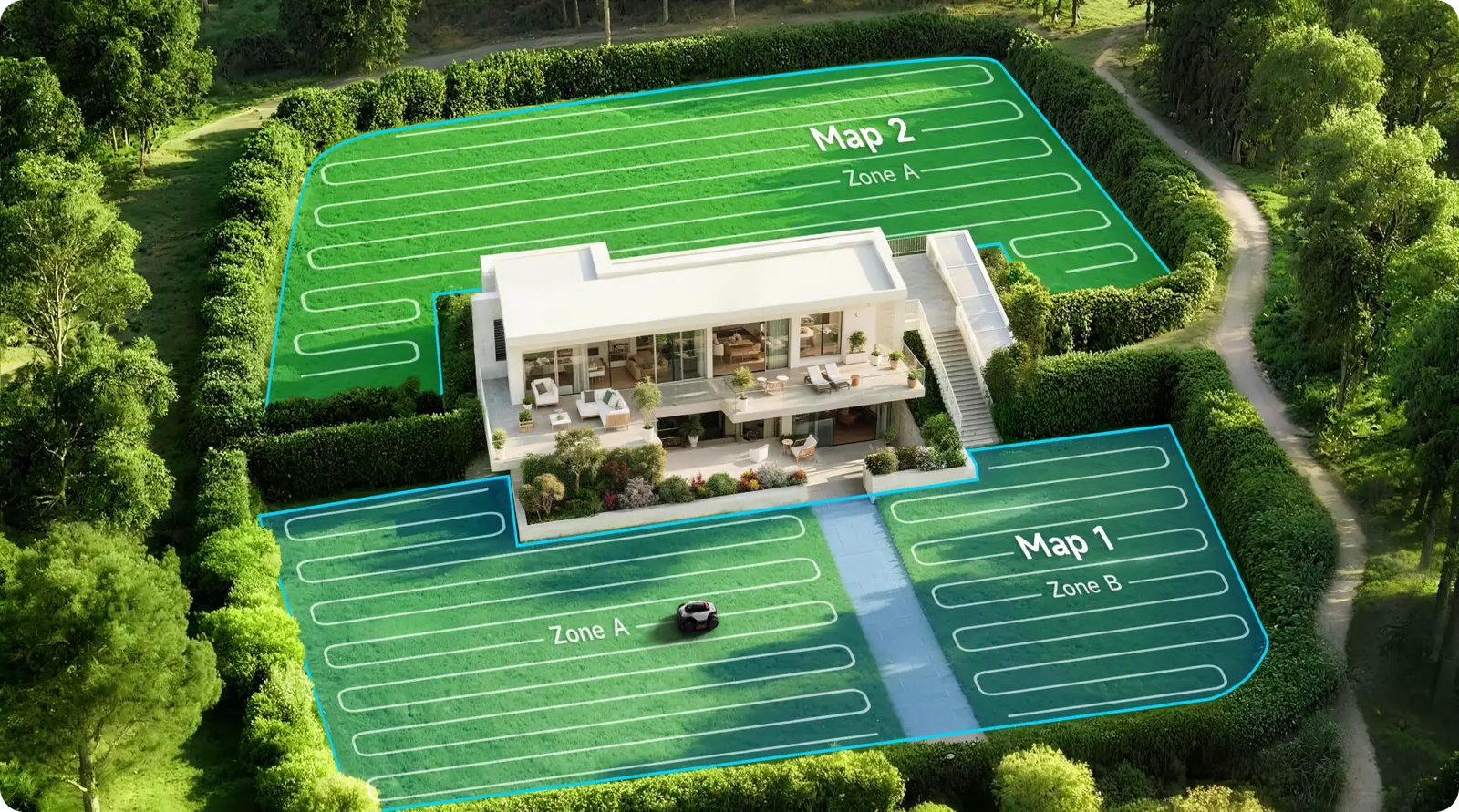 *Im Automatik-Mähmodus beträgt der Abstand von der Scheibe zum Rand weniger als 3 cm. Daten basieren auf Tests von Dreame Lab.