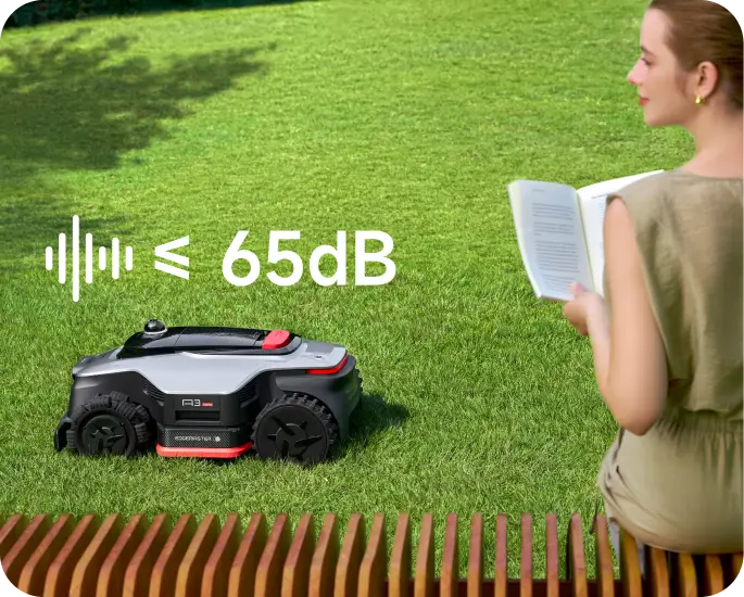 *65 dB stellt den Geräuschpegel des Mähers im Standard-Mähmodus dar.