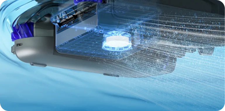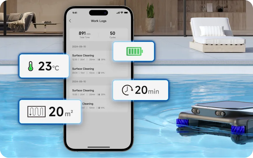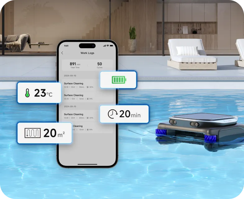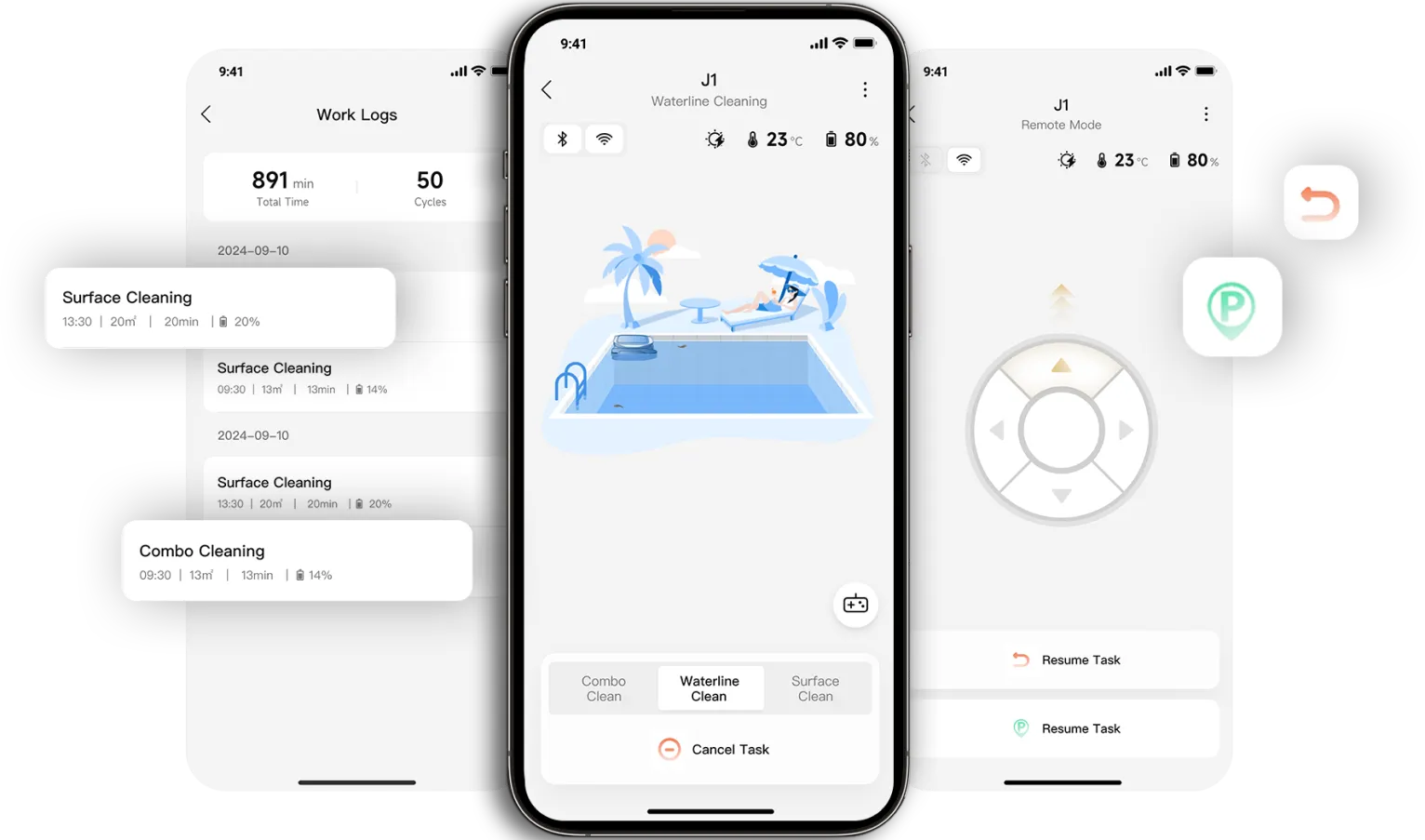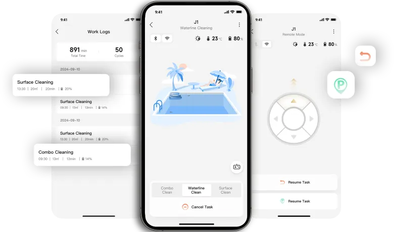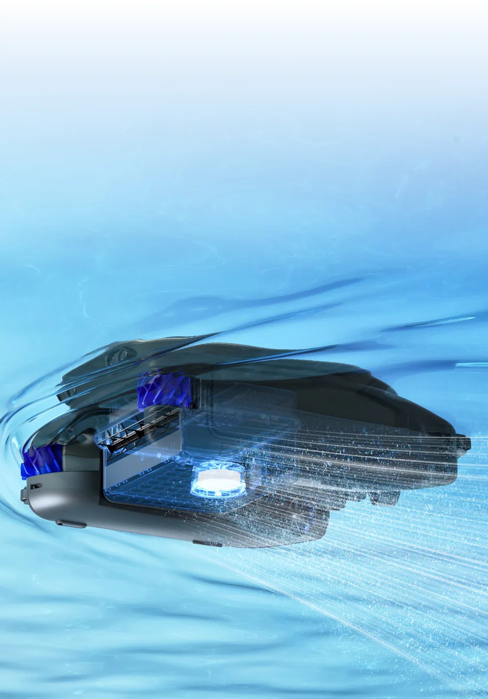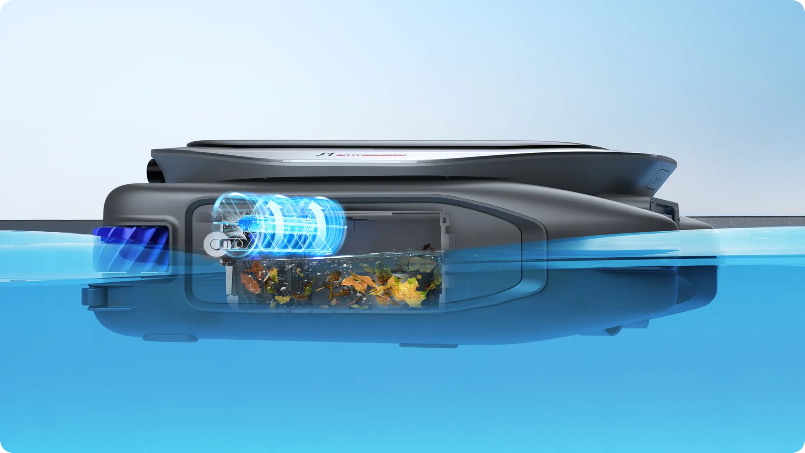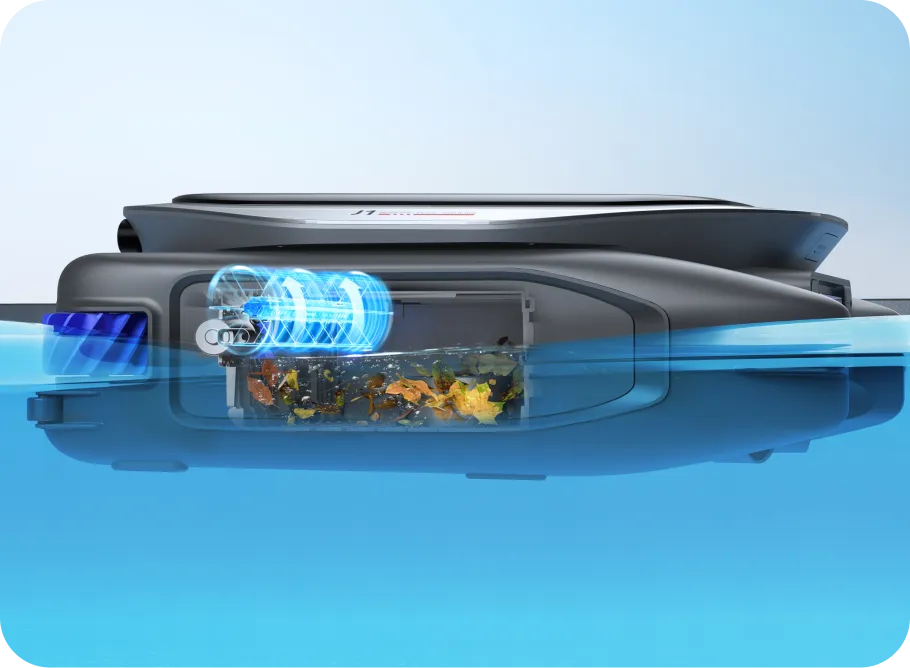 Der J1 verfügt über ein fortschrittliches Reinigungssystem und sorgt für eine 360°*-Abdeckung der Wasseroberfläche und entfernt zuverlässig Verunreinigungen wie Blätter, Haare, Staub und Insekten. Die leistungsstarke Doppelbürste reinigt gezielt die Wasserlinie und Ecken, entfernt hartnäckige Verschmutzungen und sorgt so für eine gründliche Reinigung, damit Ihr Pool jederzeit sauber bleibt und zum Schwimmen einlädt.