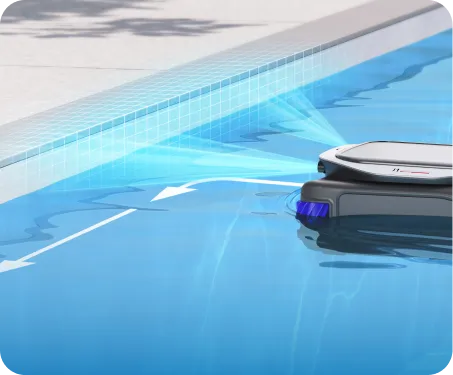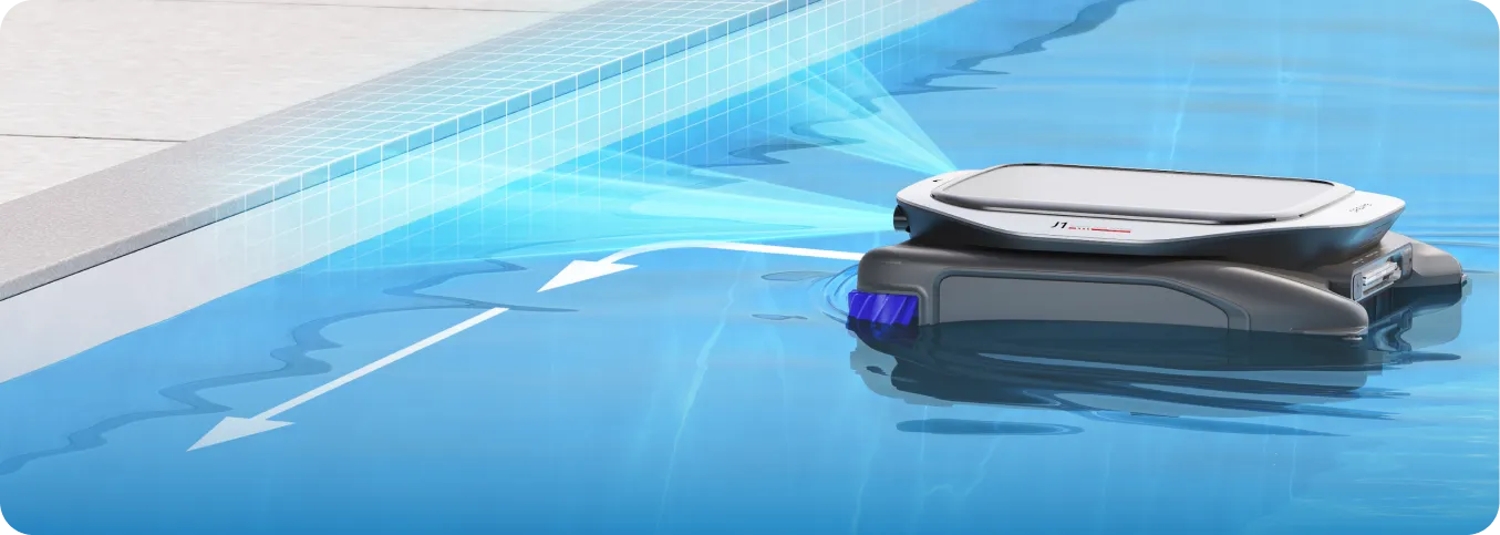 Dank der fortschrittlichen PoolSense™-Technologie erkennt der J1 Poolränder über eine größere Distanz und verlangsamt sich beim Annähern an Wände schrittweise. Das sorgt für eine sichere, effiziente Reinigung und schützt vor Beschädigungen.