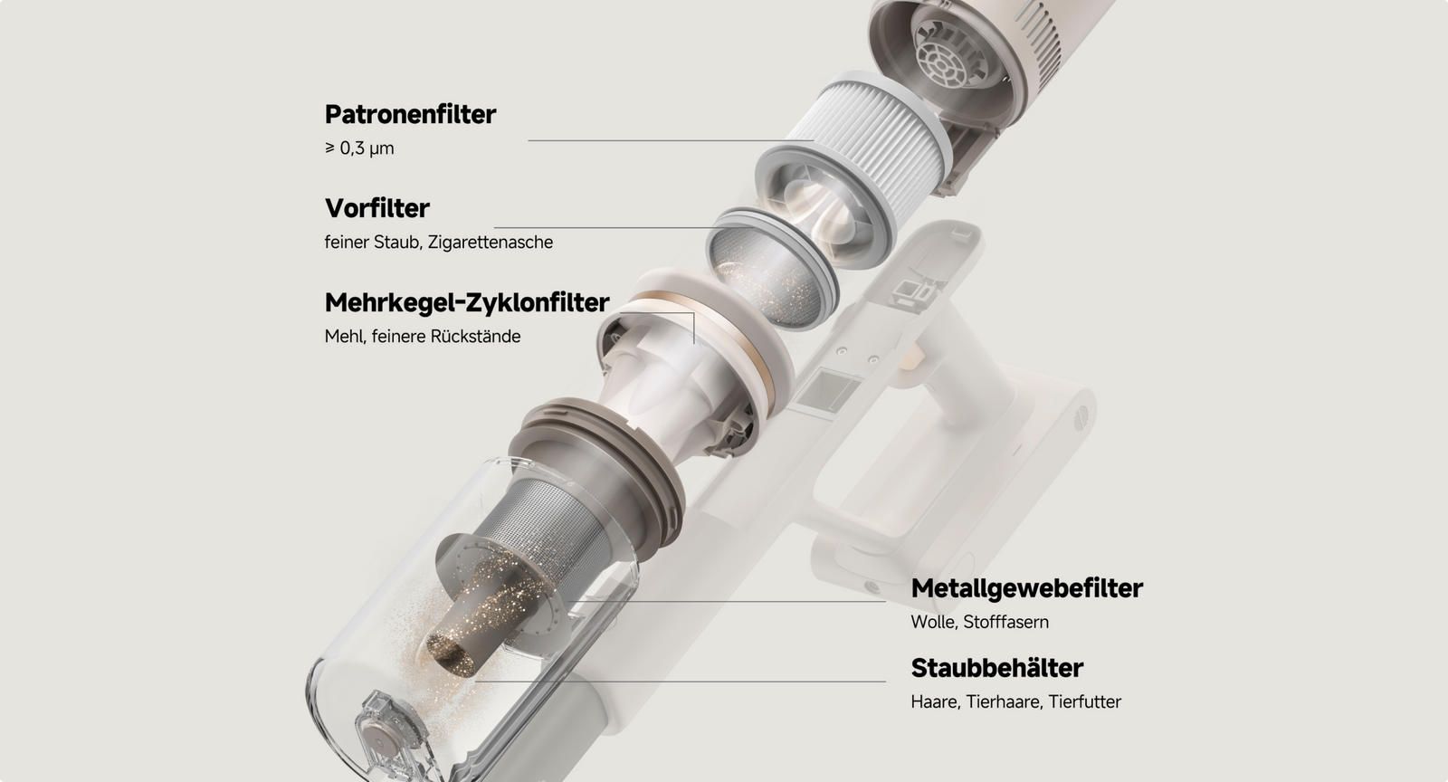 *40 Minuten: Basierend auf Tests im Dreame-Labor, durchgeführt im Eco-Modus mit dem Kombinationswerkzeug. Die tatsächliche Laufzeit kann je nach Nutzungsbedingungen variieren.