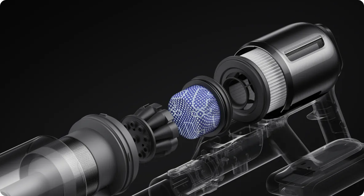 *210 AW/24 kPa, 120.000 U/min: Basierend auf Tests im Dreame-Labor. Die tatsächliche Leistung kann abweichen.