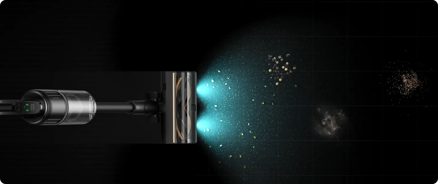*200 m²: Basierend auf Tests im Dreame-Labor, durchgeführt im Eco-Modus mit der Hauptbürste. Die tatsächliche Leistung kann abhängig vom Layout Ihres Zuhauses abweichen.