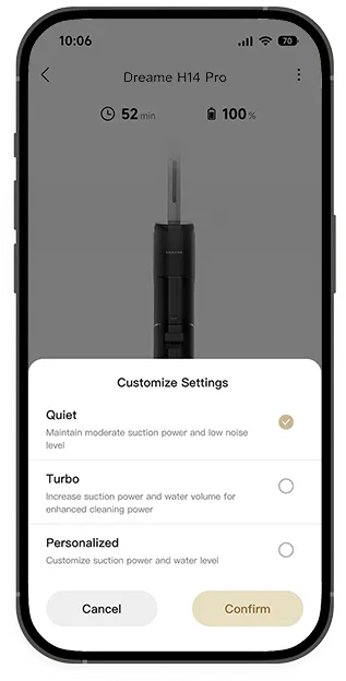 Steuern Sie die Funktionen Ihres H14 Pro ganz einfach über ein Mobilgerät.