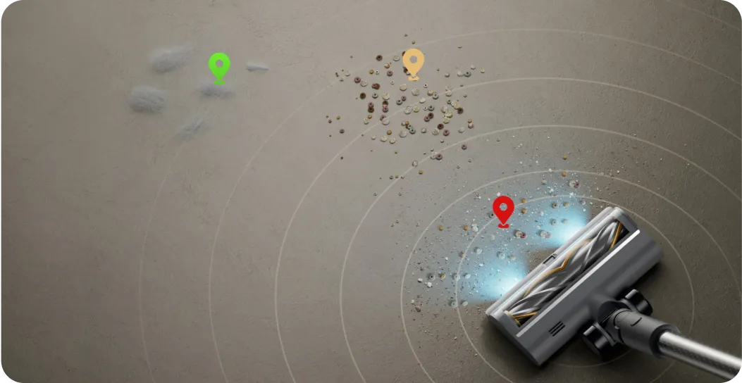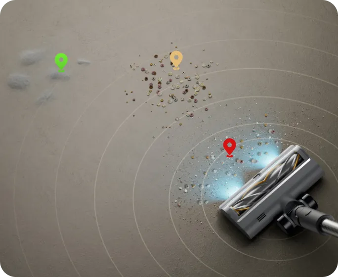 *200 m²: Basierend auf Tests im Dreame Labor, die im Eco-Modus mit der weichen Rollenbürste durchgeführt wurden. Die tatsächliche Leistung variiert je nach Ihrer individuellen Wohnungseinrichtung.