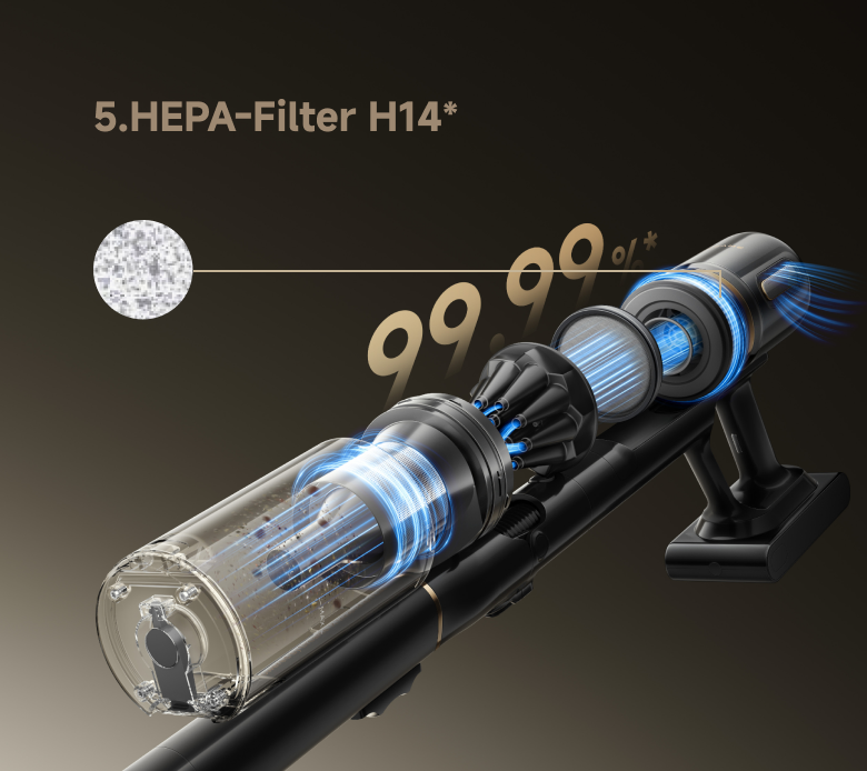 *≥0,1 µm Partikelfiltration, 99,99 % Filtrationseffizienz: Erreicht eine Gesamtfiltrationseffizienz von bis zu 99,99 % für Partikel mit einer Größe von bis zu 0,1 µm. Basierend auf Tests von SGS gemäß IEC 62885-4:2020 (modifiziert zur Messung der Filtrationseffizienz für Partikel mit einer Größe von 0,1 µm). Prüfbericht Nr. SHFT251100065771.