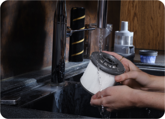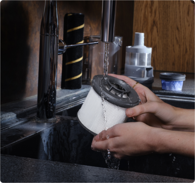 Das fünfstufige Filtersystem mit einem HEPA-Filter der Klasse H14* erfasst Feinstaub und Partikel (inklusive Pollen und Tierhaare) mit einer Effizienz von bis zu 99,99 %*. So wird sauberere Luft in Ihr Zuhause zurückgeführt.