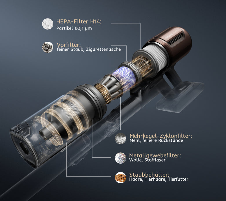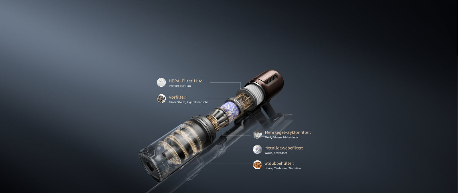 *0.1µm, 99.99%: Basierend auf Tests im Dreame Labor, Bericht Nr.ZM-250728-002-16.