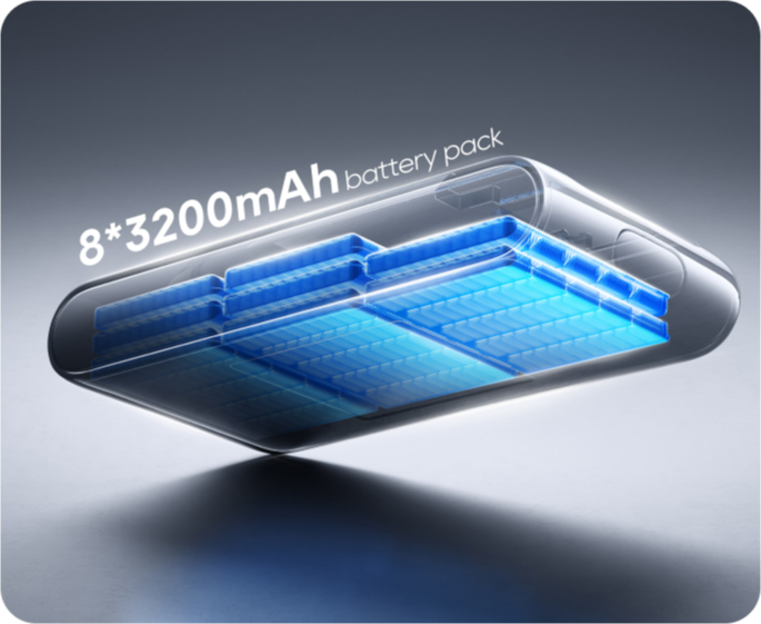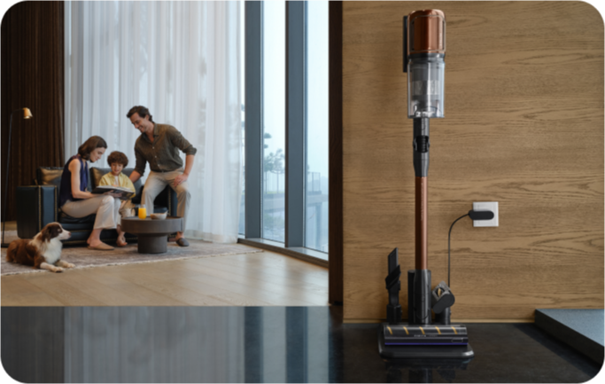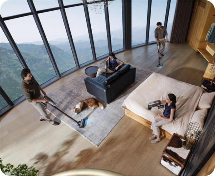 *270m²: Basierend auf Tests im Dreame Labor, die im Eco-Modus mit der Multi-Oberflächenbürste durchgeführt wurden. Die tatsächliche Leistung variiert je nach Ihrer individuellen Wohnungseinrichtung.