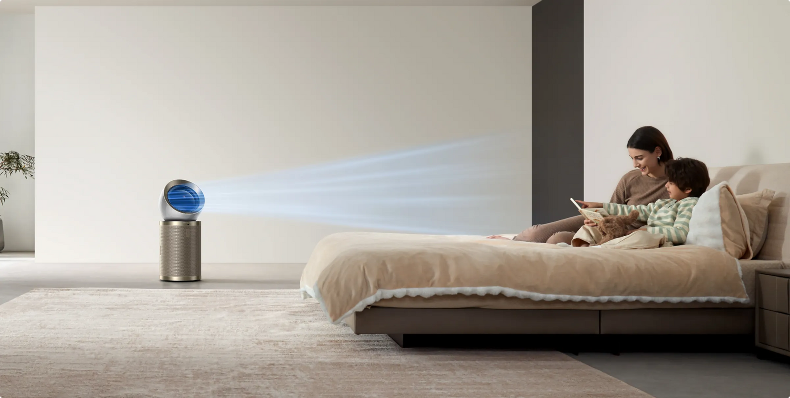 Genießen Sie einen individuell einstellbaren Luftstrom für alle Personen in Ihrem Zuhause. Ist nur eine Person anwesend, folgt der Luftstrom ihrer Position; bei mehr als einer Person bewegt er sich intuitiv von einer Seite zur anderen*, um eine gleichmäßige und verbesserte Versorgung mit Luft zu ermöglichen.