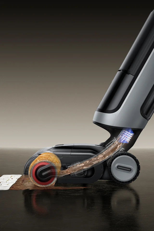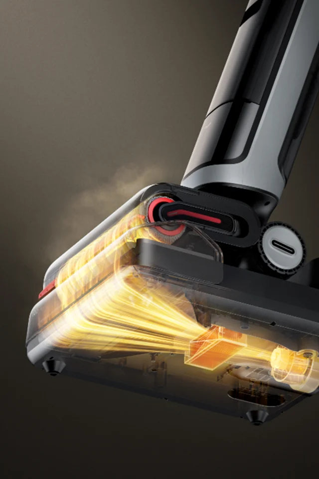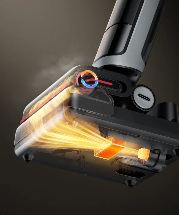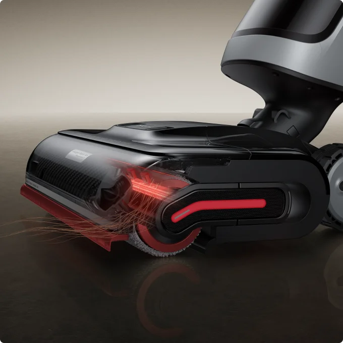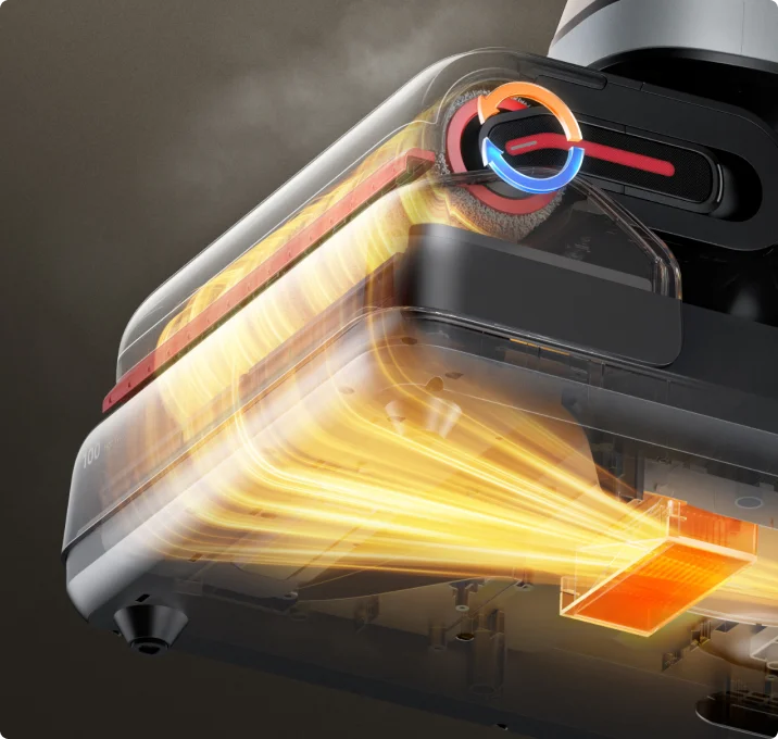 Der RGB-Sensor des H15 Pro Heat ist während der Bodenreinigung aktiv und unterstützt das intelligente Selbstreinigungssystem. Es erkennt dem Verschmutzungsgrad der Bürste und des Bodens und passt sich entsprechend an. Dank der gründlichen Selbstreinigung werden Ablagerungen schnell von der Rollenbürste entfernt.