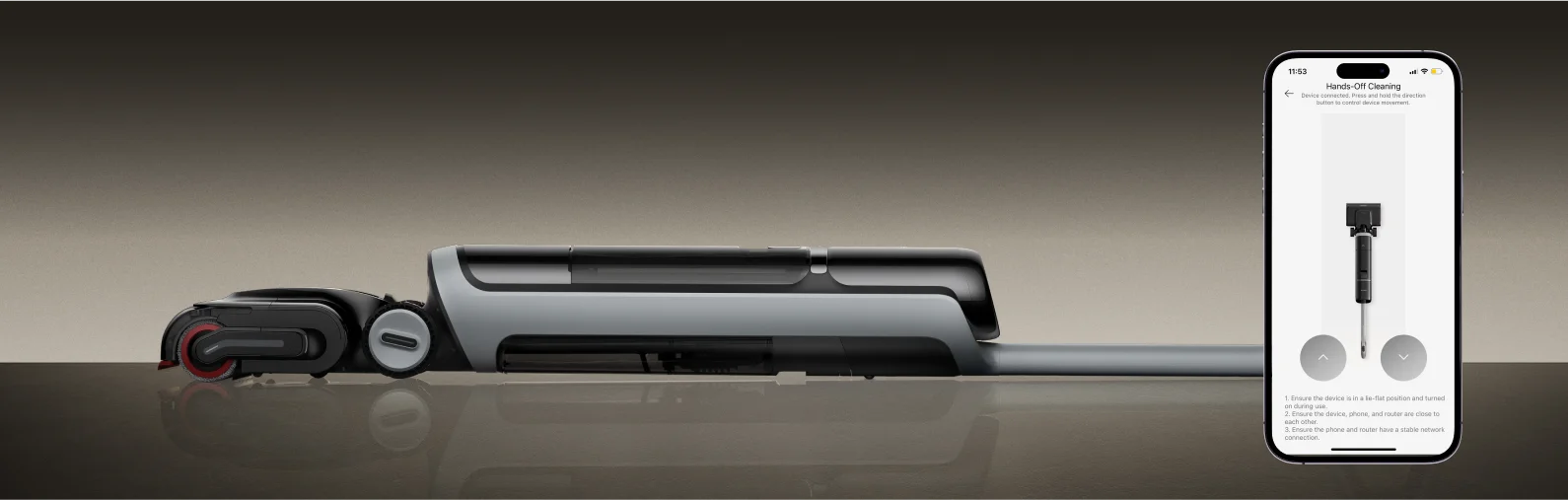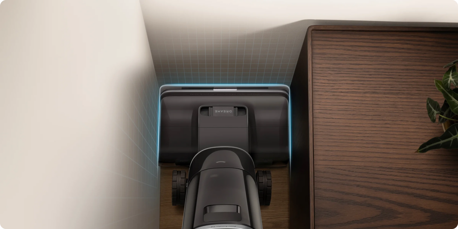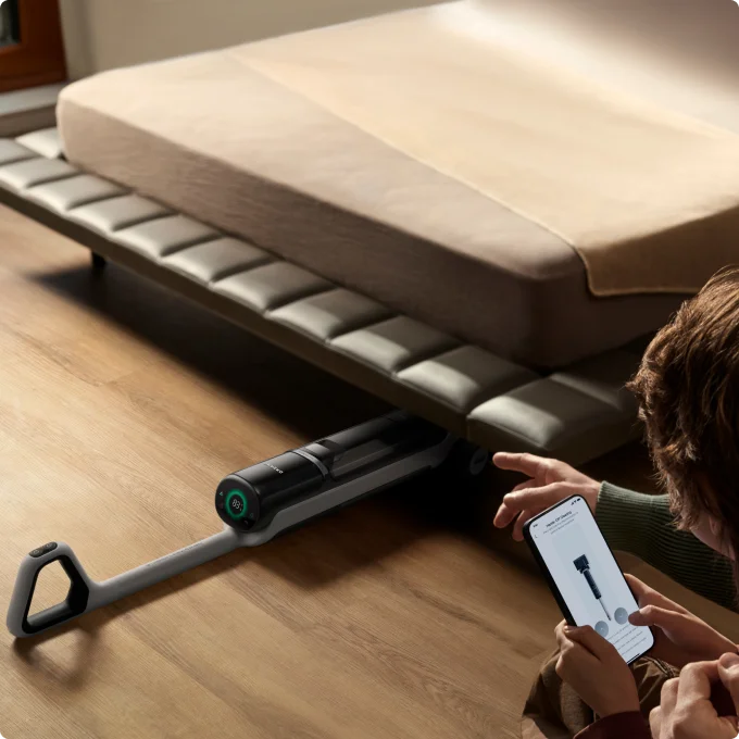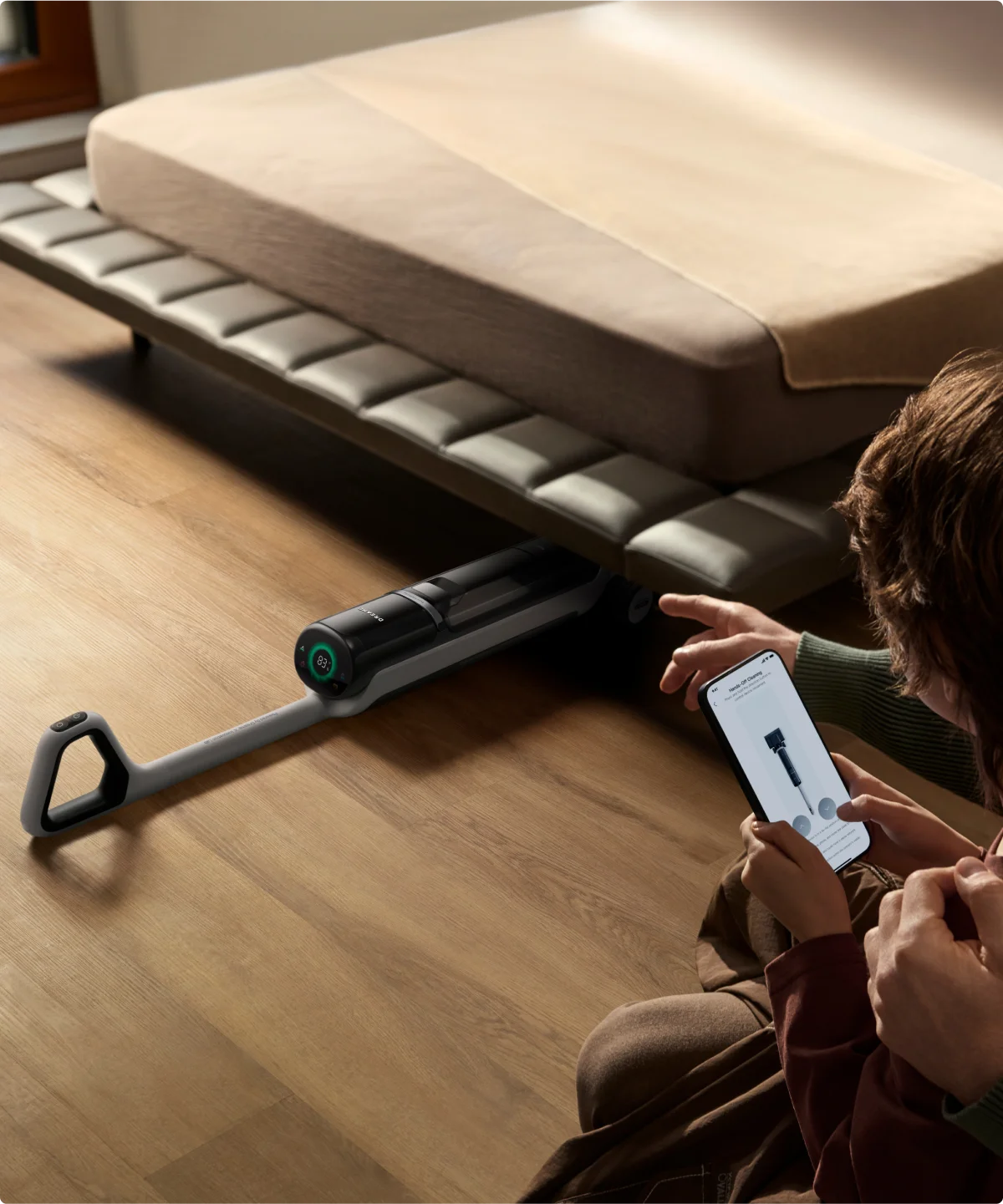 Mit der Dreamehome-App können Sie Ihr Gerät wie einen Saugroboter steuern und so auch niedrige, schwer zu reinigende Bereiche säubern.