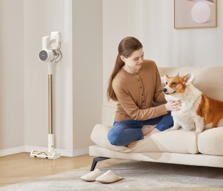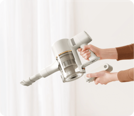 Reinigen Sie Ihr gesamtes Zuhause mit einer Saugleistung von 120 AW/20.000 Pa – dank eines Akkus mit 7 x 2.500 mAh und einem bürstenlosen Hochgeschwindigkeitsmotor mit 120.000 U/min. So erfassen Sie überall Haare, Schmutz, Staub und Rückstände.