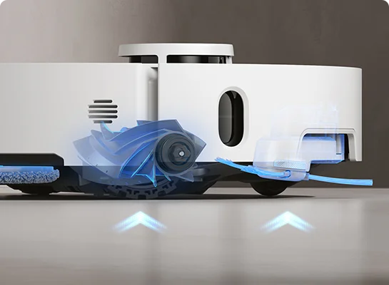 Der X40 Ultra Complete erkennt Schmutz und passt seine Reinigung entsprechend an – vom intensiven Staubwischen bis hin zum Entfernen hartnäckiger Flecken wie Sojasauce. Der Saugroboter verfügt über eine anhebbare Seitenbürste, die eine Verteilung des Schmutzes verhindert, und wischt bei niedriger Geschwindigkeit* besonders präzise.