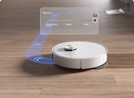 Über die Dreamehome-App können Sie den Wischvorgang ganz an Ihre Bedürfnisse anpassen und aus 32 Feuchtigkeitsstufen wählen.