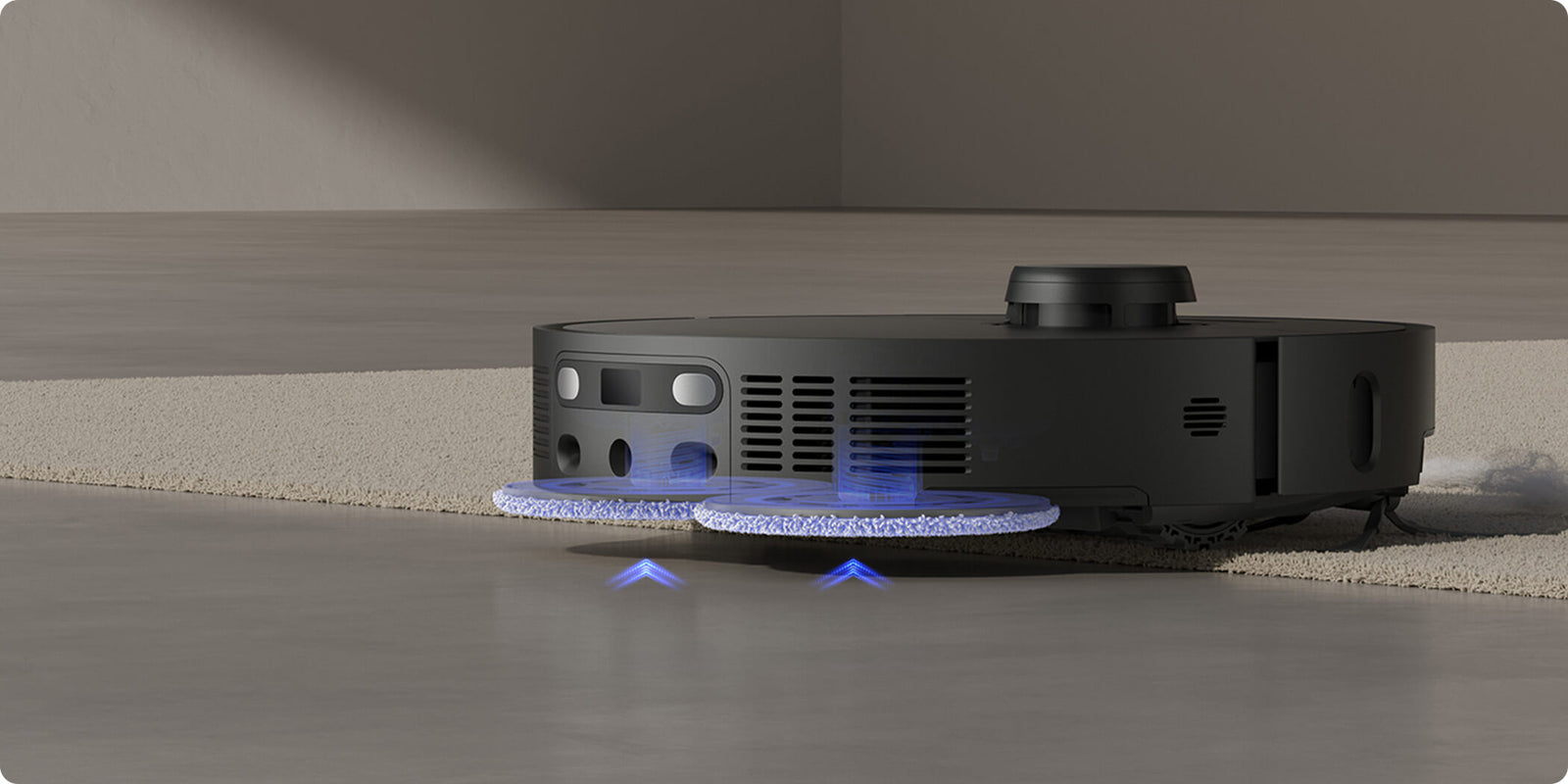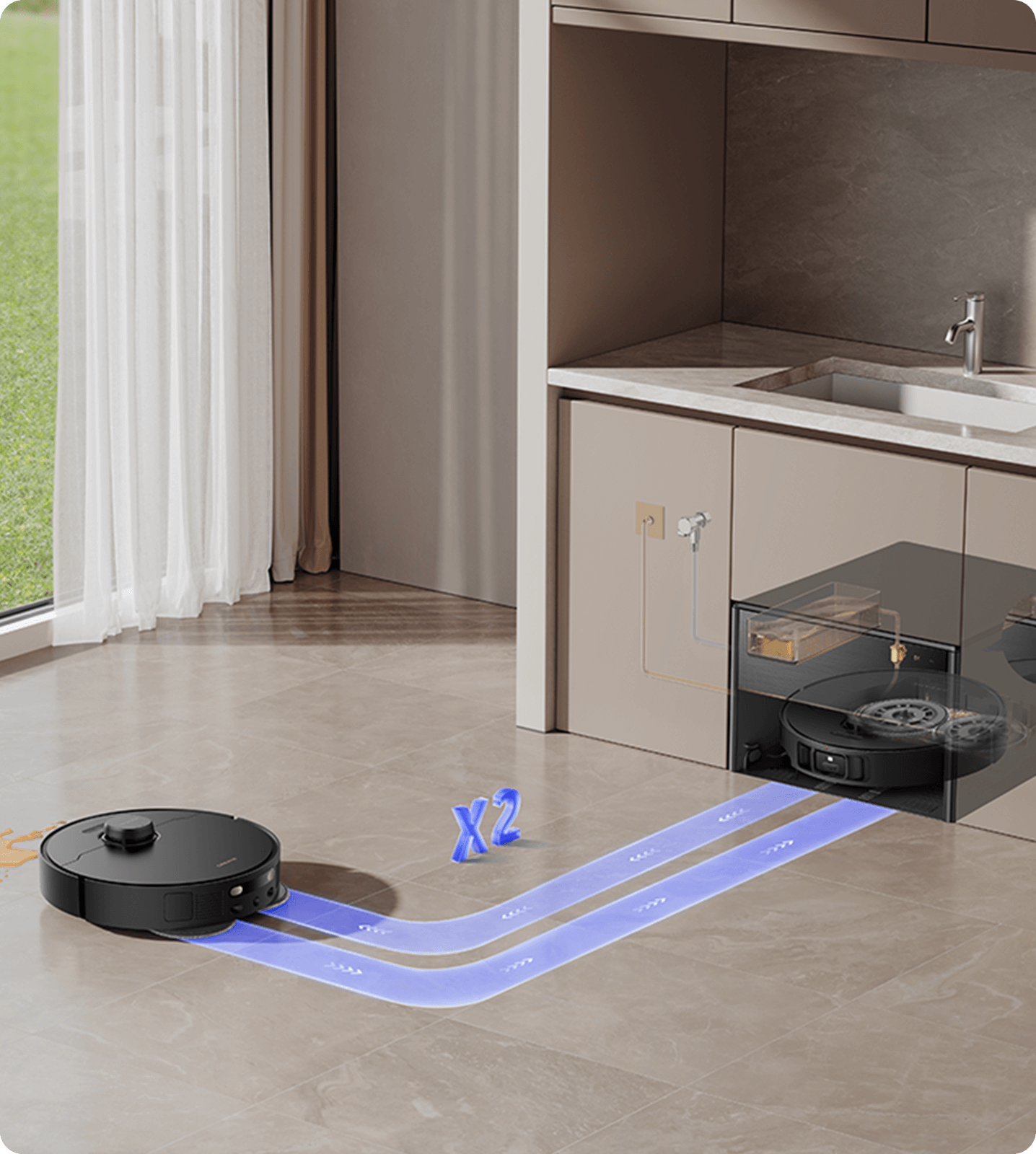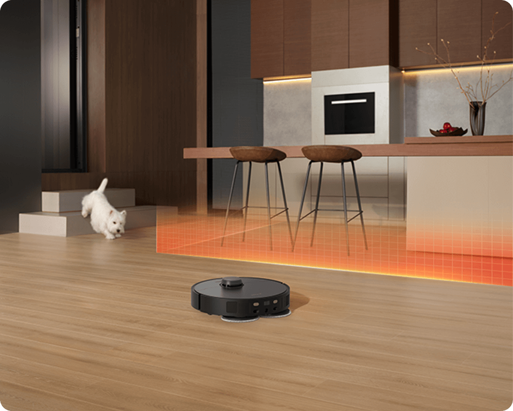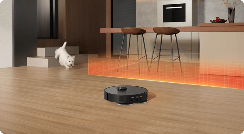 Die RGB-Kamera und das intelligente Schmutzerkennungssystem des X40 Master erkennen Bodenverschmutzungen und passen die Reinigungsmodi zum Entfernen von Staub und hartnäckigen Flecken an. So werden Ihre Böden präzise und effizient mit einer Geschwindigkeit von 0,1 m/s** gereinigt.