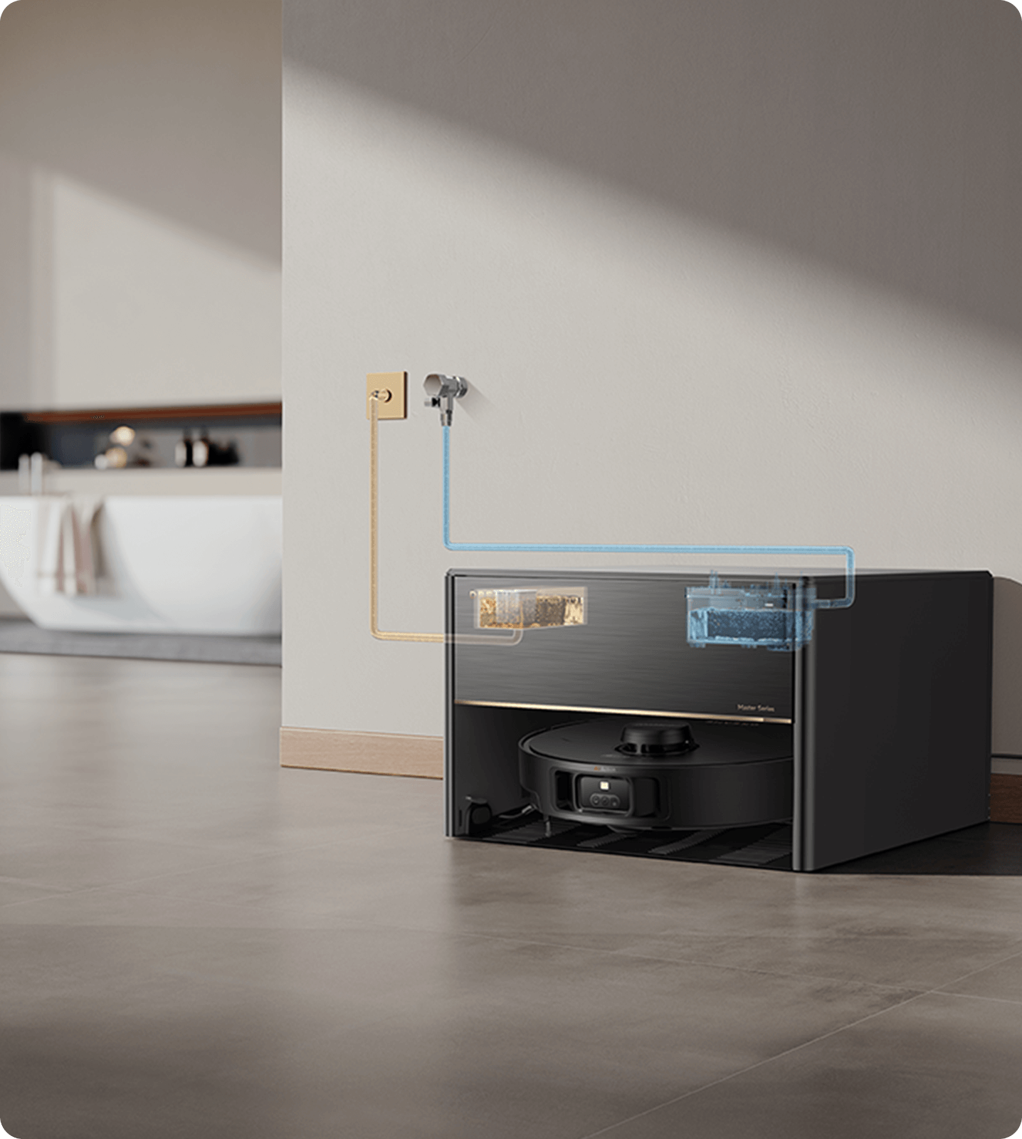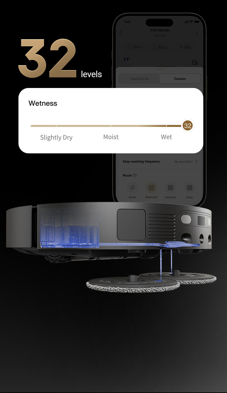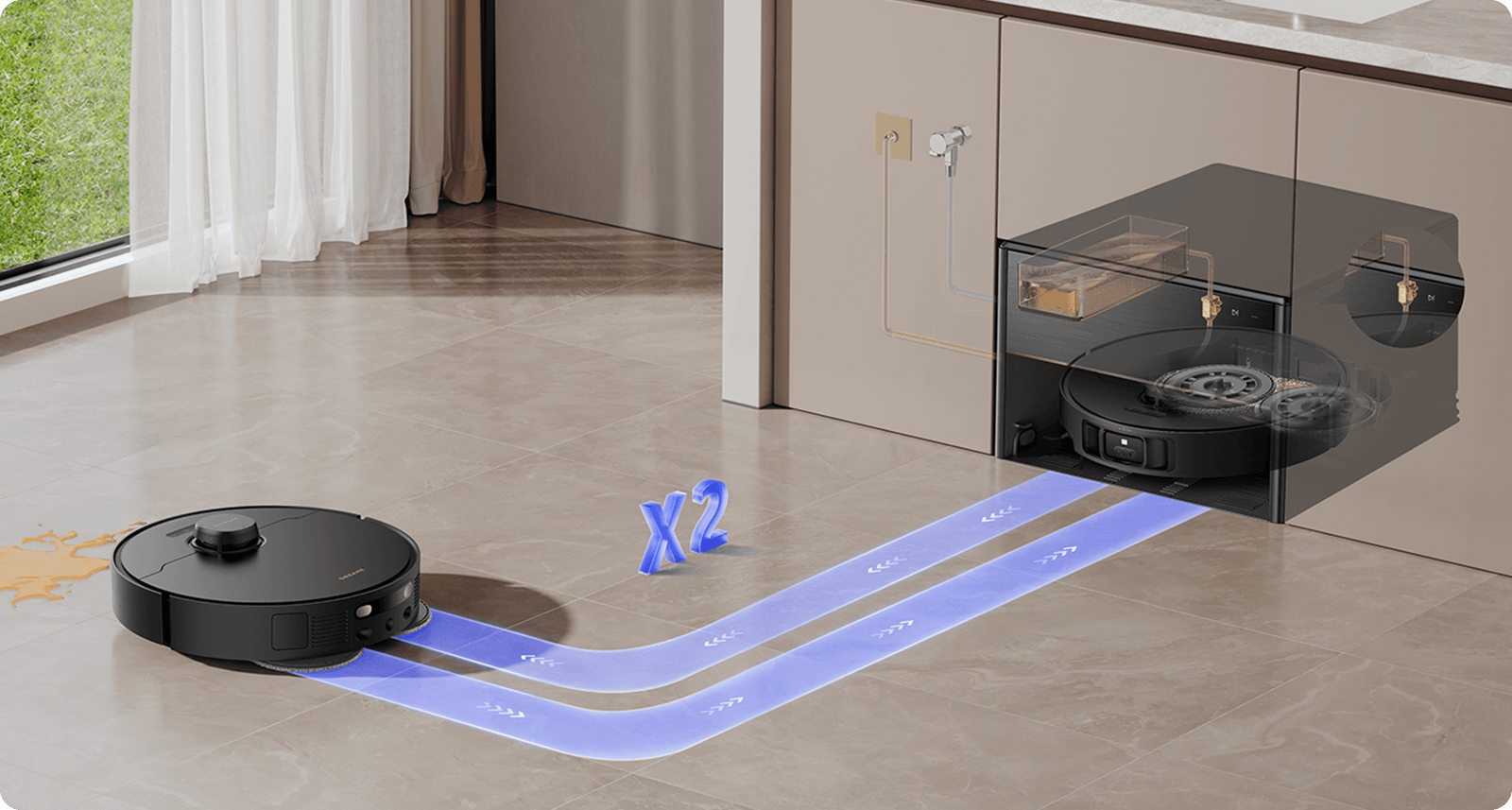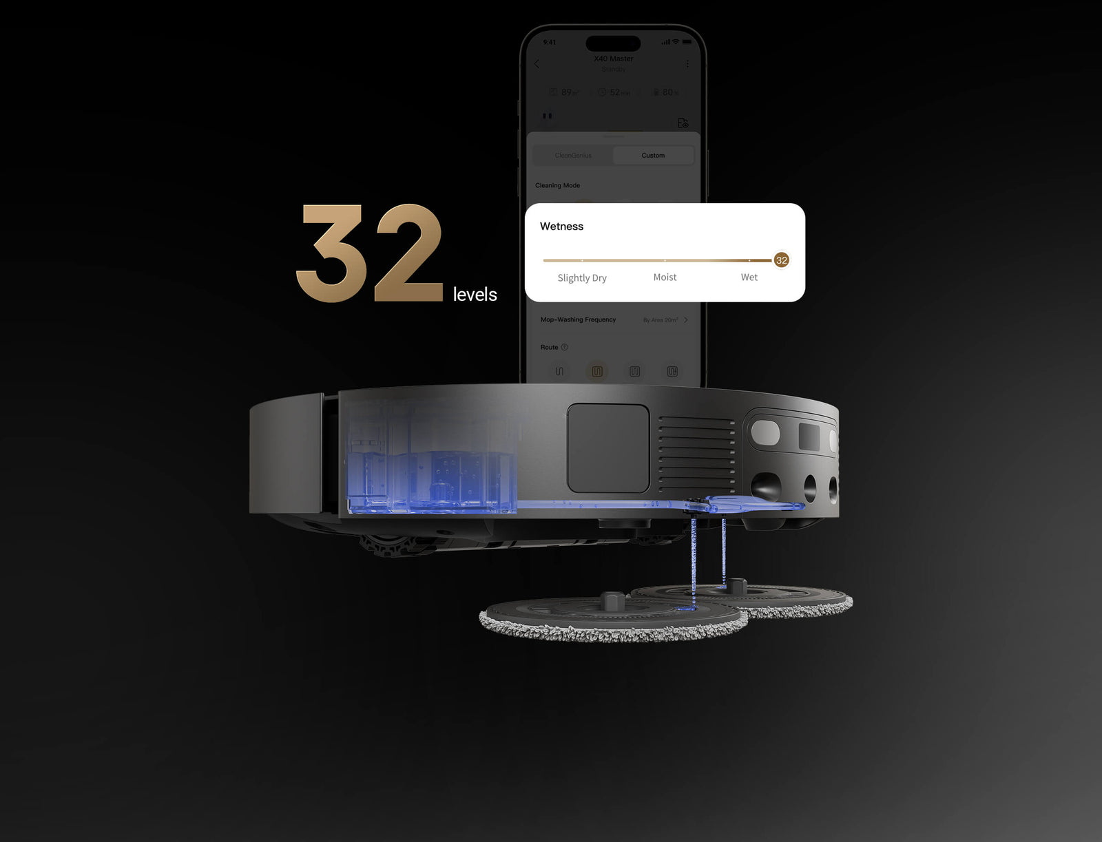 Die RGB-Kamera und das intelligente Schmutzerkennungssystem des X40 Master erkennen Bodenverschmutzungen und passen die Reinigungsmodi zum Entfernen von Staub und hartnäckigen Flecken an. So werden Ihre Böden präzise und effizient mit einer Geschwindigkeit von 0,1 m/s** gereinigt.